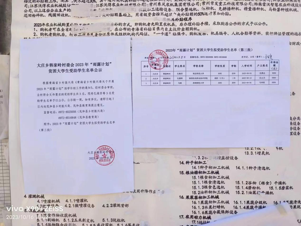 大庄乡韩家岭村2023年“雨露计划”贫困大学生受助名单公示(第三批)