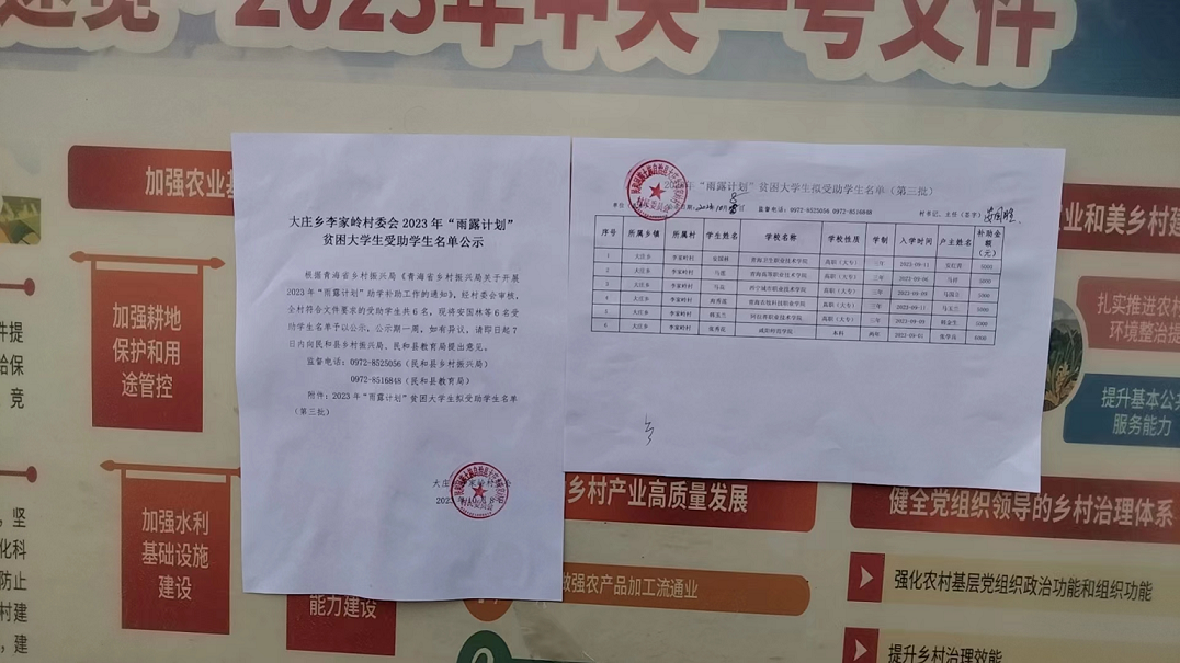 大庄乡李家岭村2023年“雨露计划”贫困大学生受助名单公示(第三批)