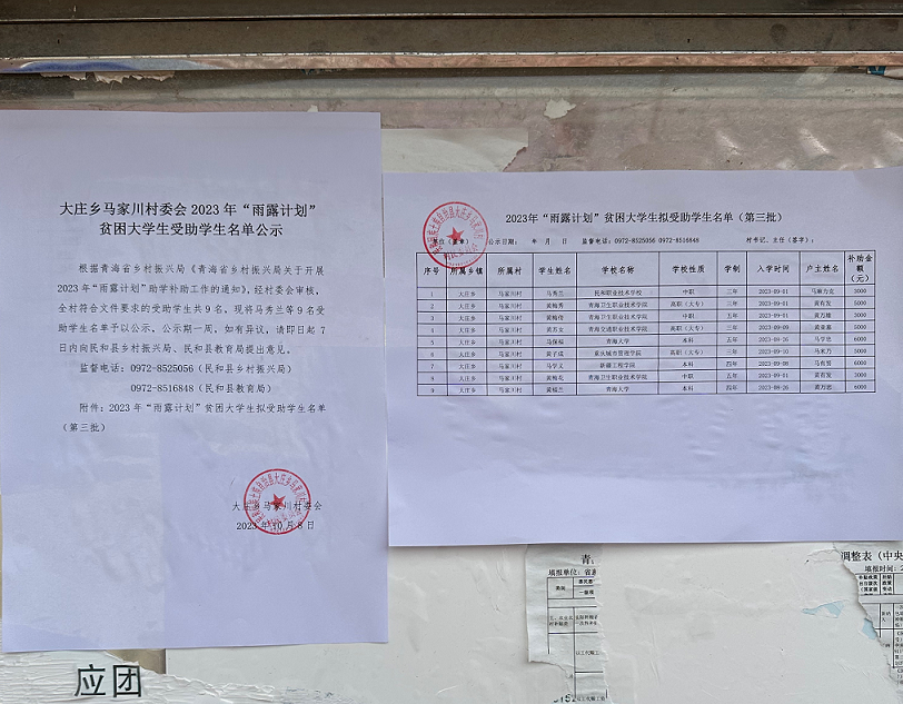 大庄乡马家川村2023年“雨露计划”贫困大学生受助名单公示(第三批)