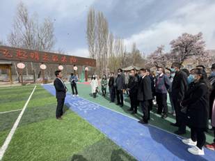 清晨,随着大巴汽笛声的鸣响,党员干部们踏上了寻访红军足迹的学习之旅。第一站是红光村内的西路军红军小学,党员干部们背朝红军树,面迎感恩门,聆听红军小学马校长讲述令人泪目的红军故事、深厚的建校背景和“深耕红色资源,厚植红色底蕴”的教育理念。在红军小学校史馆,看着红军将士们曾经用过的简陋桌椅、磨盘等生活用具,党员干部们不禁感慨:在当时那令人绝望的背景下,在极其艰苦的环境中,战士们都没有忘记自己的使命和信仰,他们心中共产主义必胜的信念多么令人动容……
