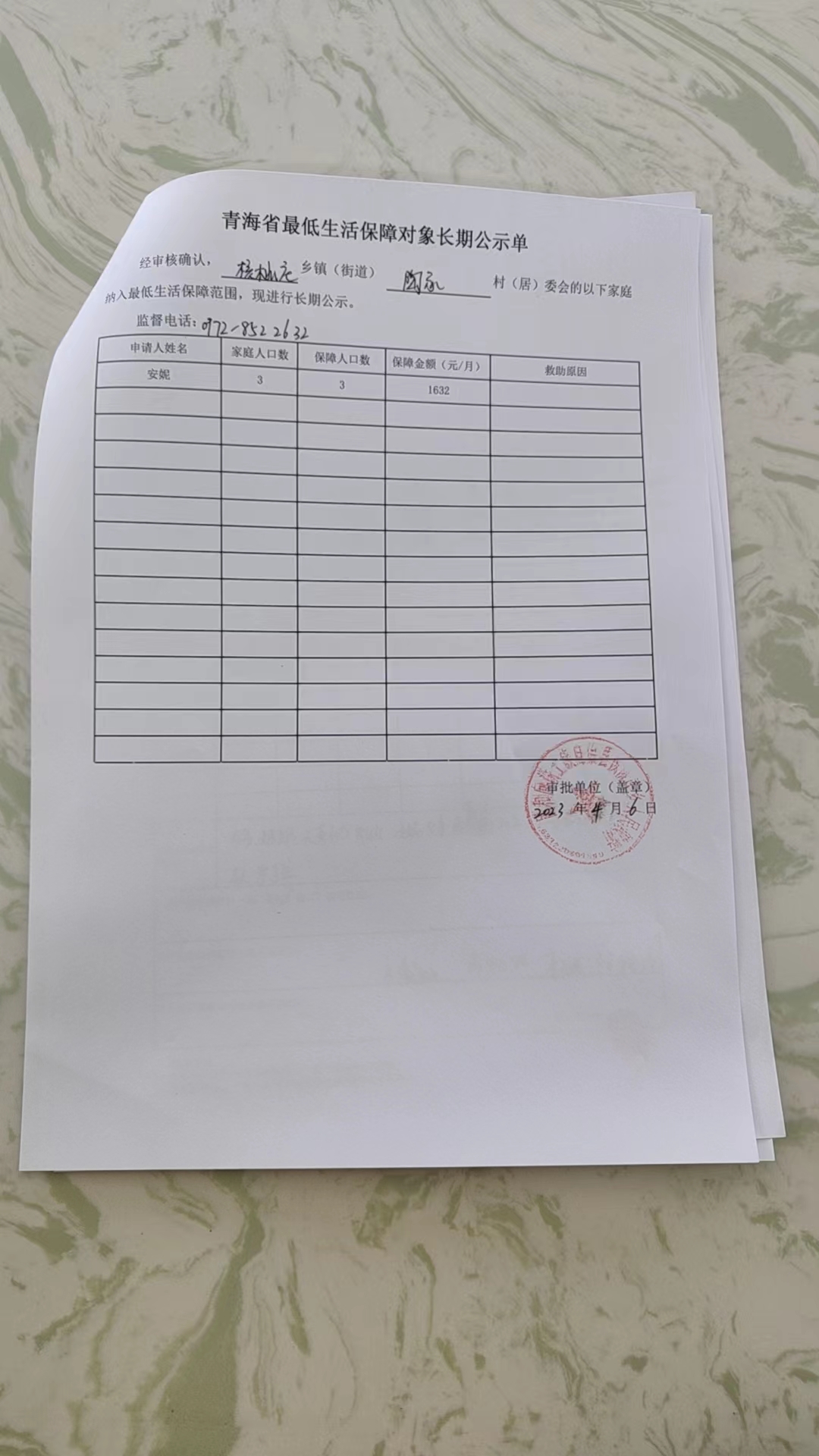 陶家村低保新纳入对象公示