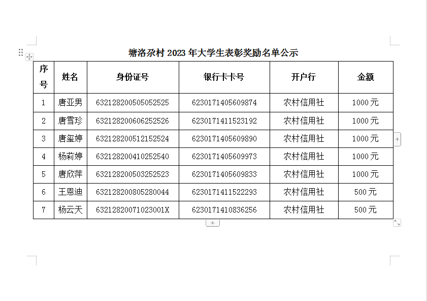 塘洛尕村2023年大学生表彰奖励名单公示