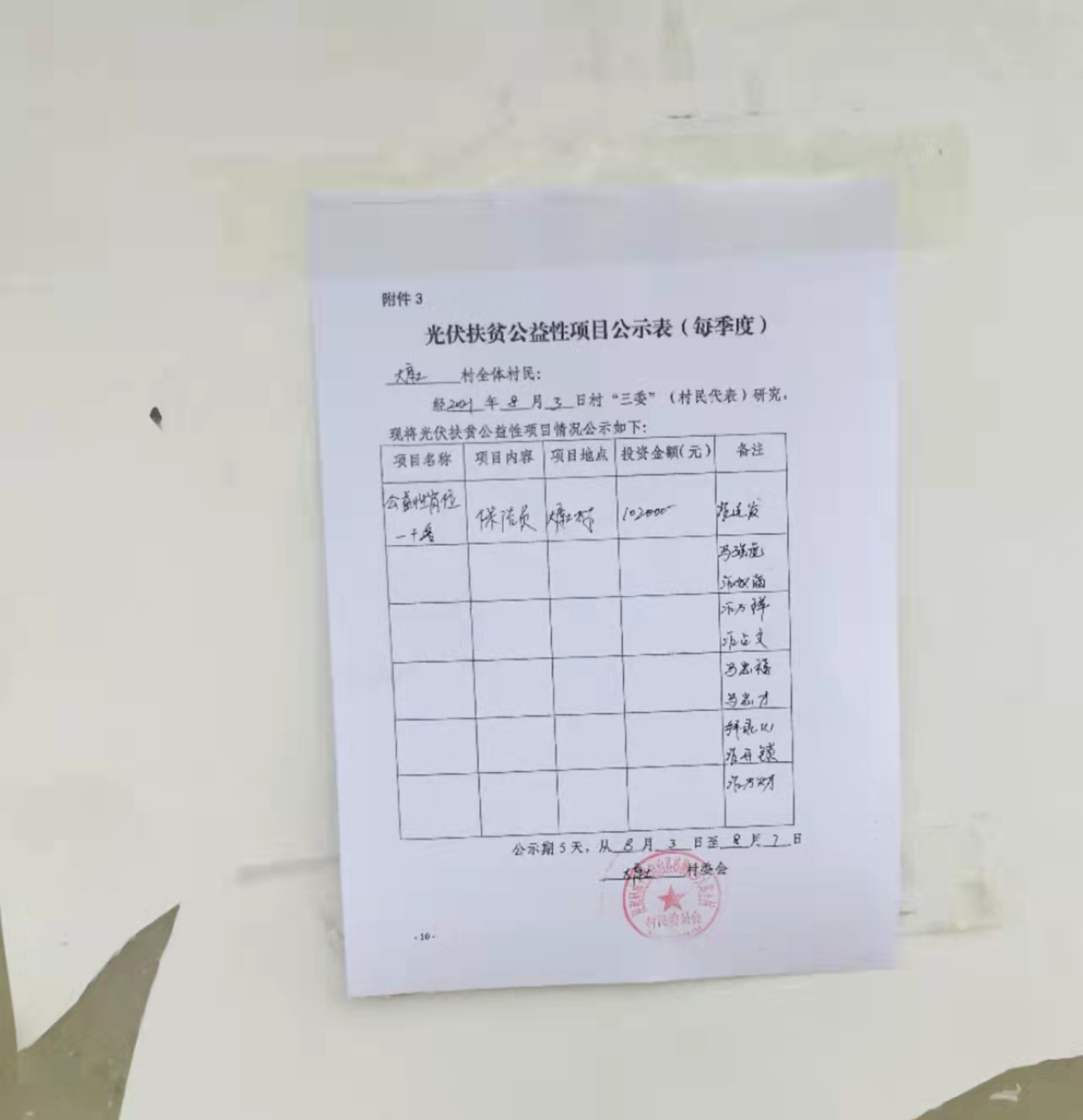 大库土村光伏扶贫公益性项目公示表