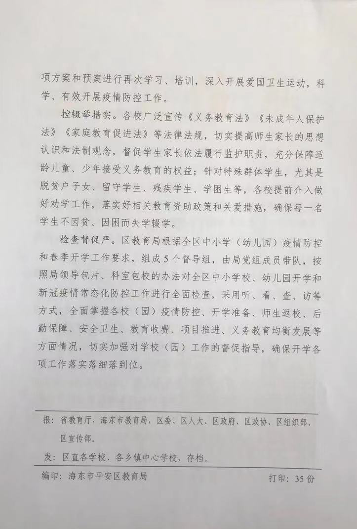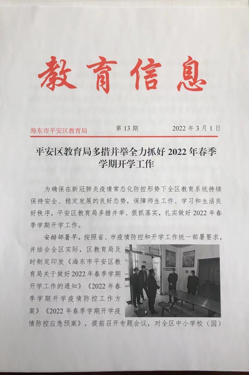 平安区教育局多措并举全力抓好2022年春季学期开学工作