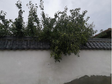 一路南下,公路两边植被茂盛,大多数是经济林木。桃树、梨树、苹果树果实挂满枝头,硕果累累。沿途好几户人家院里的梨树,部分丫枝伸出了院墙外,青绿色的果子好似