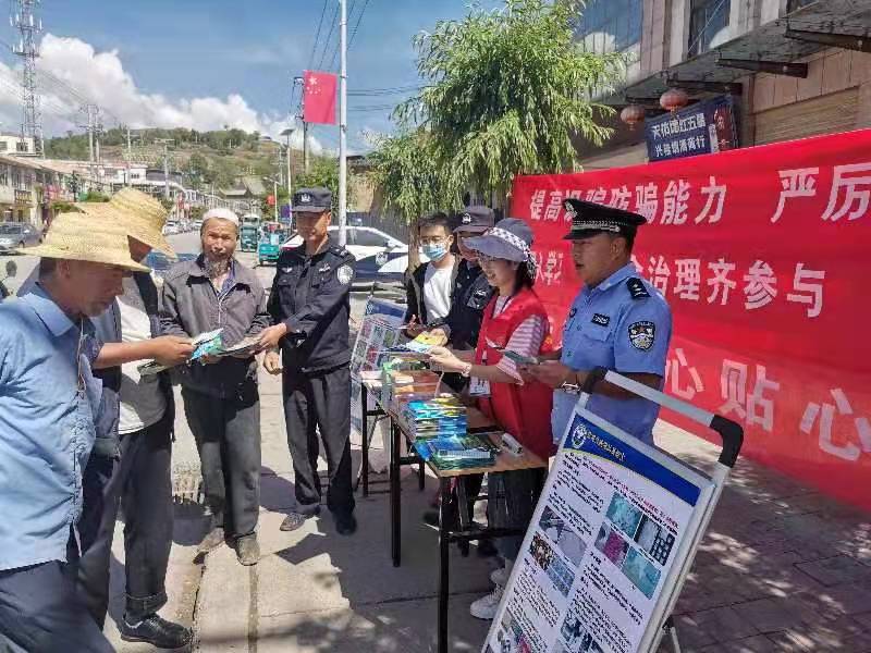 满坪镇综治办联合派出所于赶集日当前宣传相关法律法规