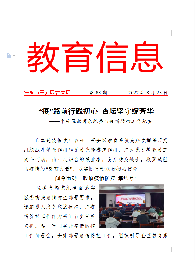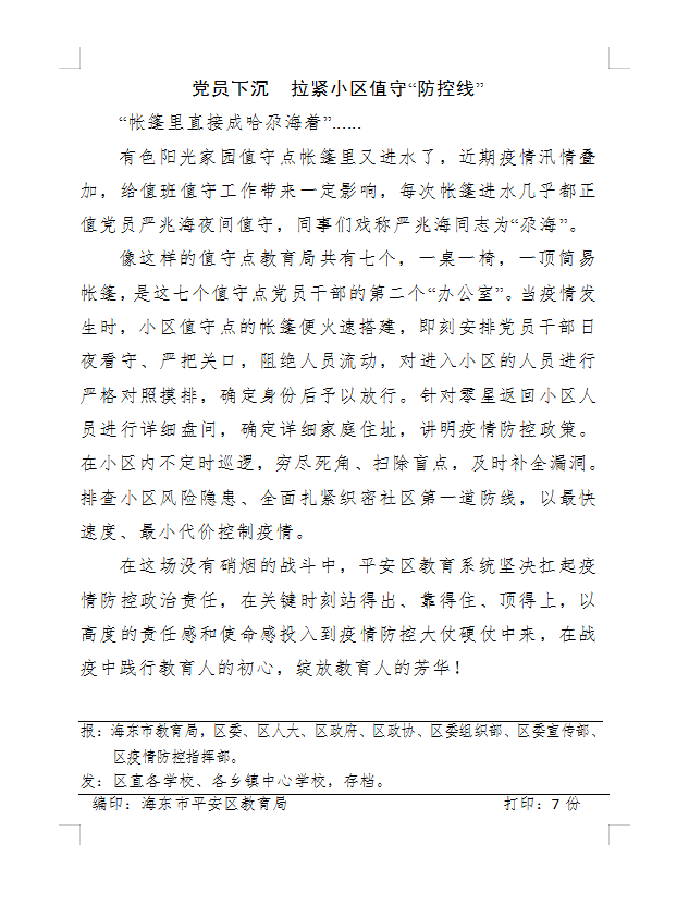 “疫”路前行践初心 杏坛坚守绽芳华 ——平安区教育系统参与疫情防控工作纪实