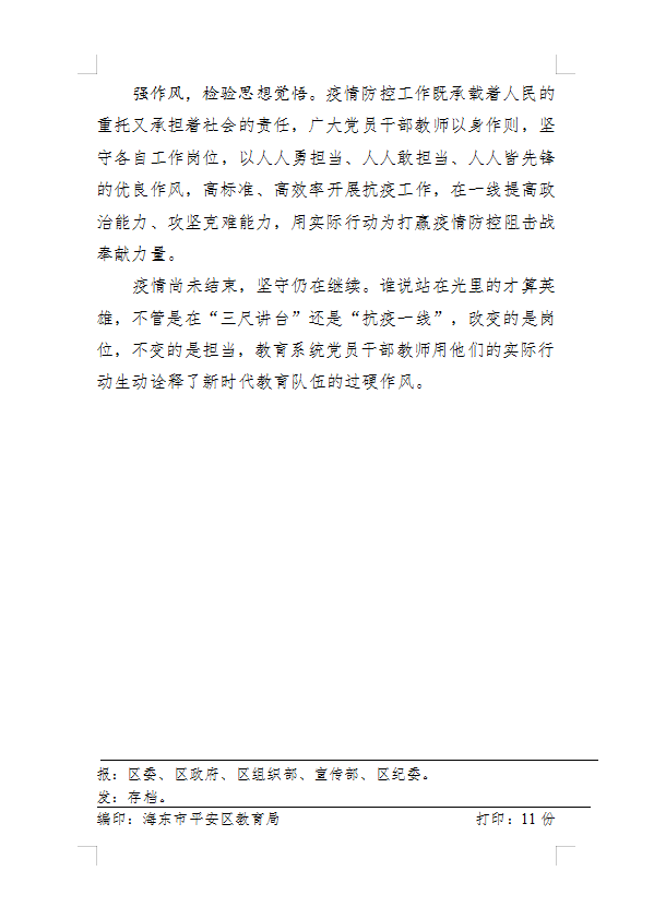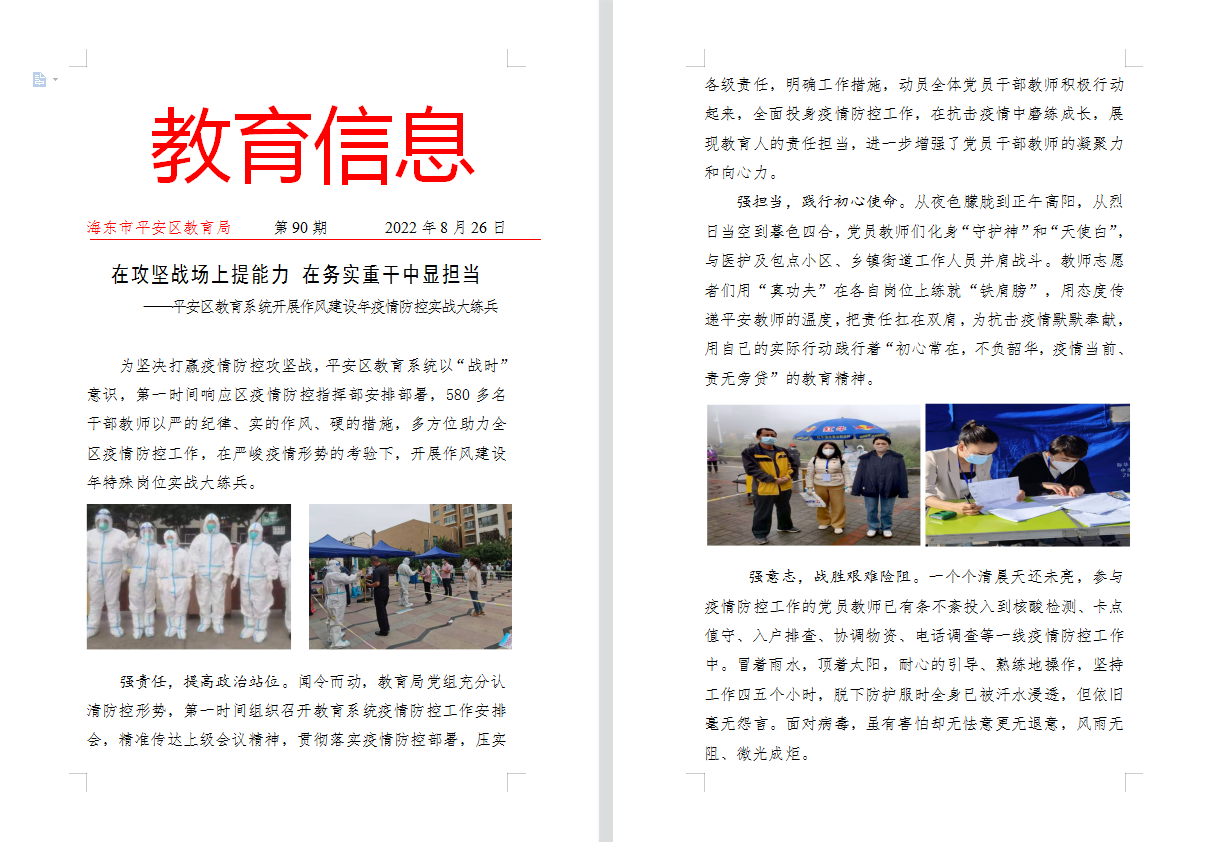 在攻坚战场上提能力 在务实重干中显担当 ——平安区教育系统开展作风建设年疫情防控实战大练兵