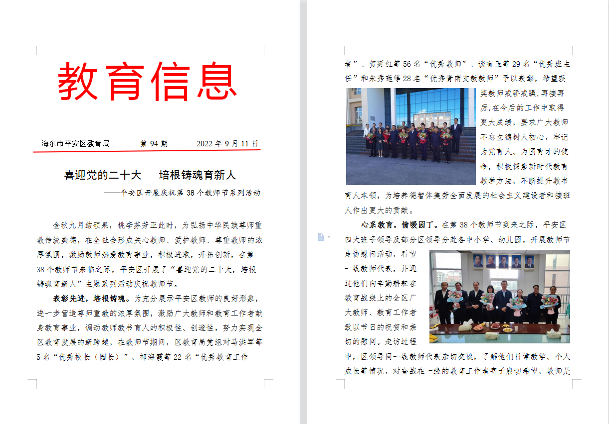 喜迎党的二十大 培根铸魂育新人 ——平安区开展庆祝第38个教师节系列活动