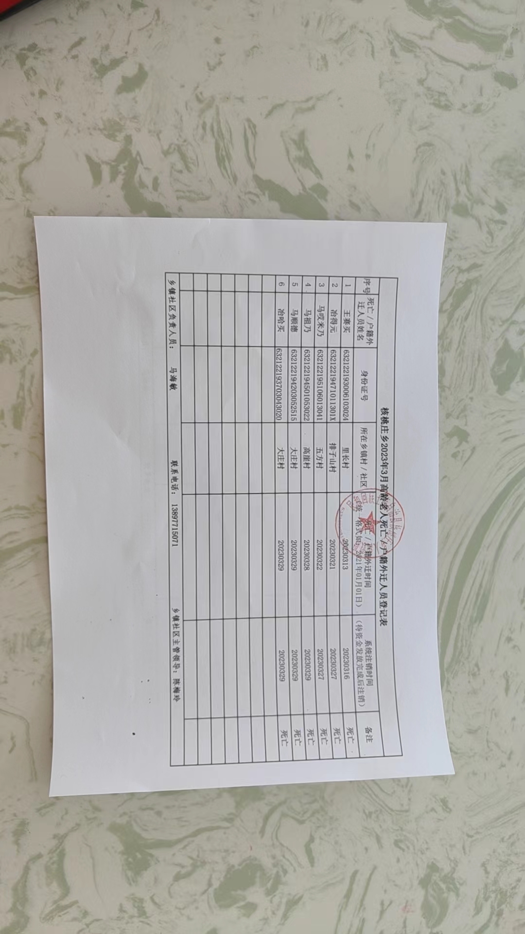 核桃庄乡2023年3月份高龄老人死亡/户籍外迁人员名单公示