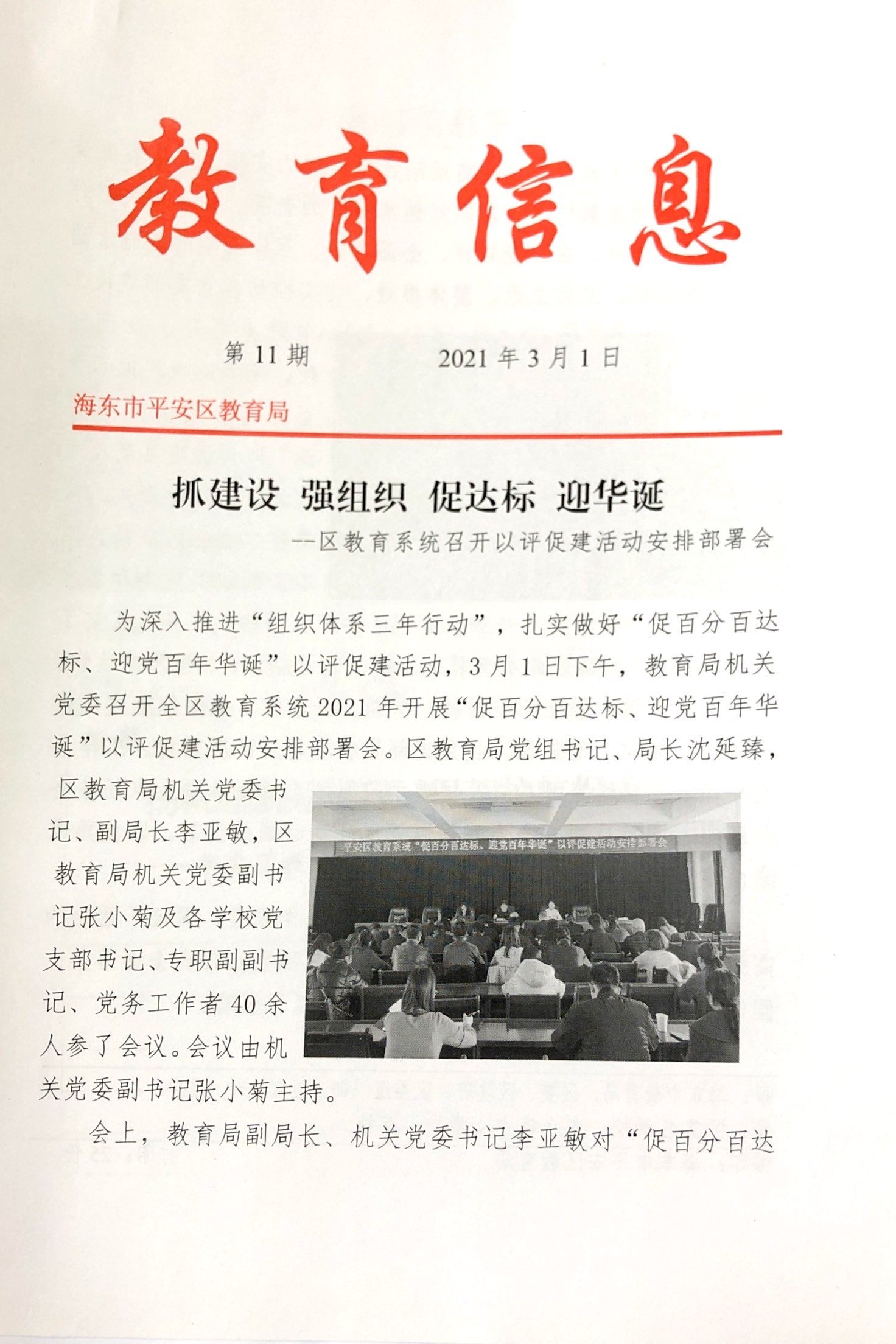 抓建设 强组织 促达标 迎华诞——区教育系统召开以评估促建活动安排部署会