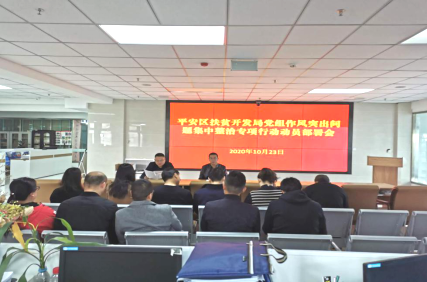 10月23日上午,区扶贫开发局召开作风突出问题集中整治专项行动动员部署会。会议传达了有省、市、区关会议精神,宣读了《区扶贫开发局关于开展作风突出问题集中专项行动的实施方案》并做了动员讲话。