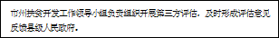 5.开展评估。贫困户脱贫次年1月底前,县级扶贫开发工作领导小组负责协调同级相关科研单位和社会中介机构等,组成第三方评估小组,在市(州)扶贫部门的参与指导下,按照贫困户脱贫标准,对本县当年脱贫贫困户落实精准扶贫政策措施、整合各类资源开展精准脱贫、实现稳定脱贫的效果以及存在的主要问题、今后工作建议等方面做好评估工作,形成评估报告上报市(州)和省扶贫开发工作领导小组办公室。