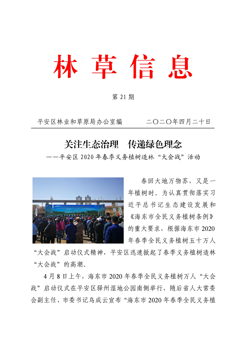 关注生态治理 传递绿色理念——平安区2020年春季义务植树造林“大会战”活动