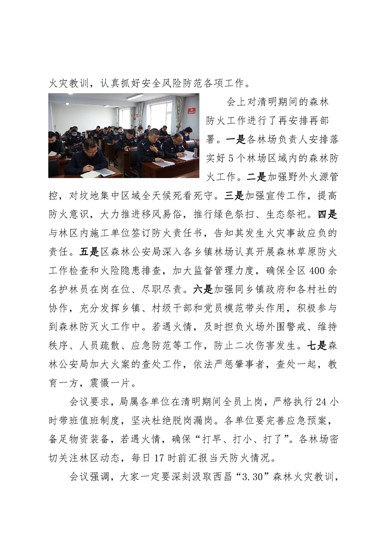 抓安全防风险 做好森林草原防灭火——区林草局召开“清明”期间森林草原防火安排部署会议