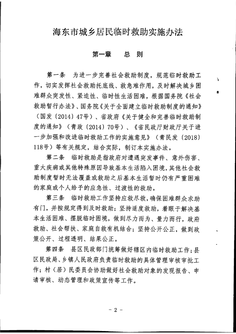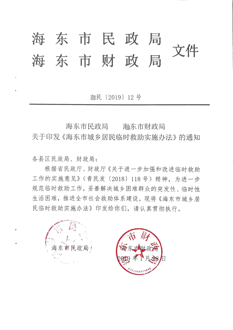 东民〔2019〕12号-关于印发《海东市城乡居民临时救助实施办法》的通知