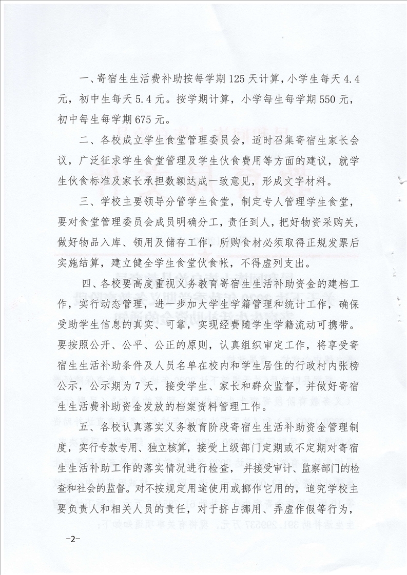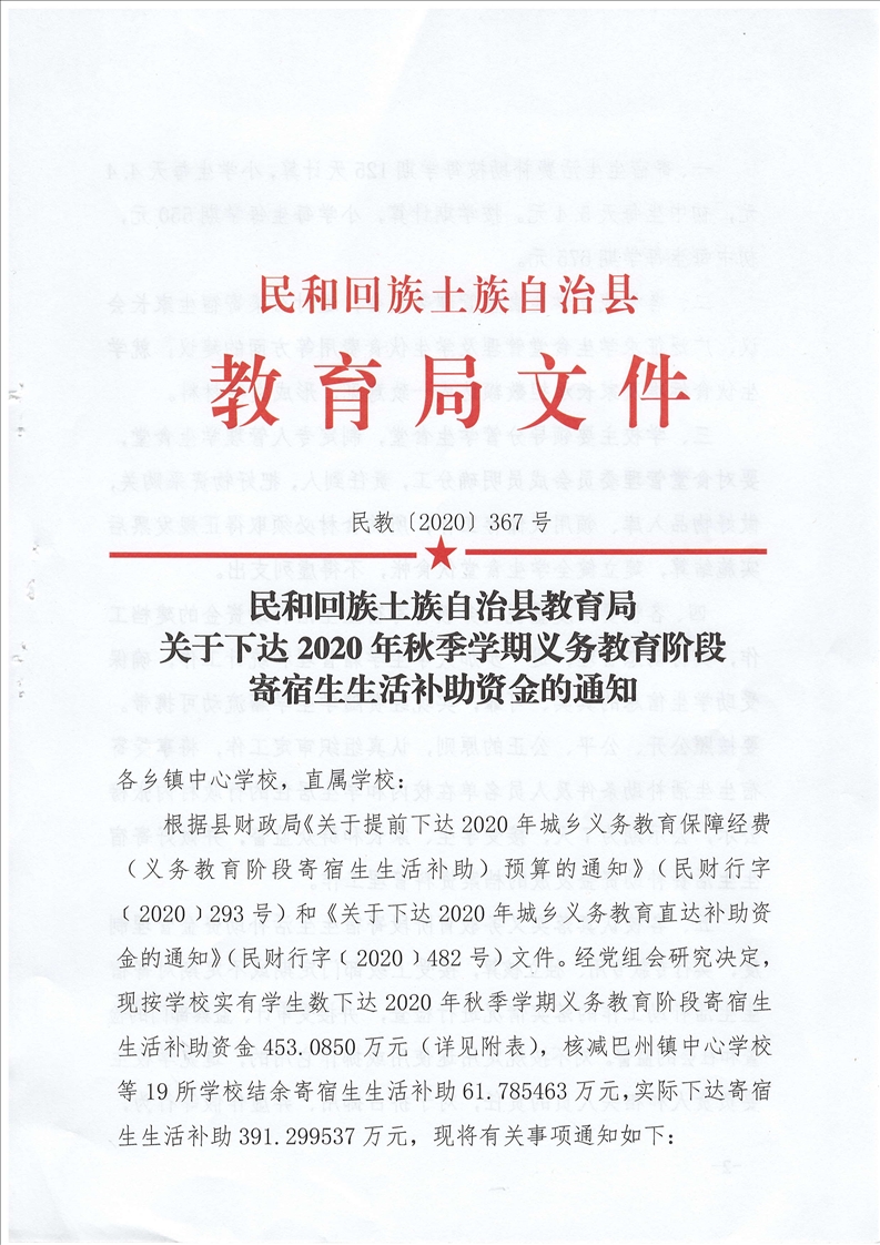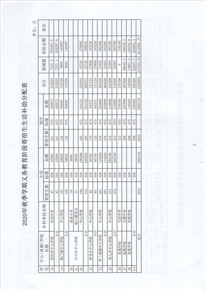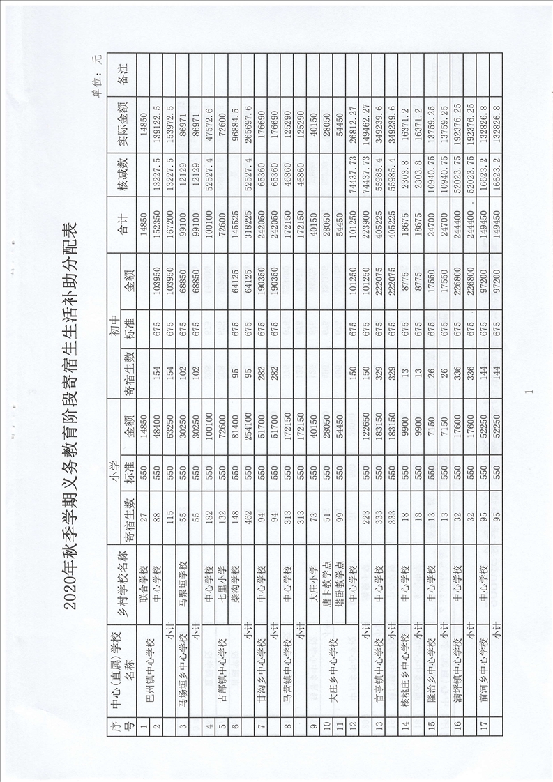 关于下达 ⒛⒛ 年秋季学期义务教育阶段 寄宿生生活补助资金的通知