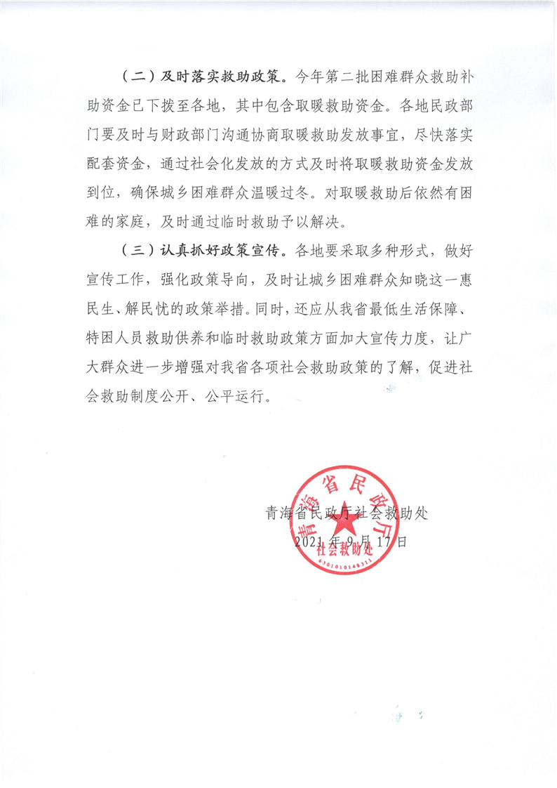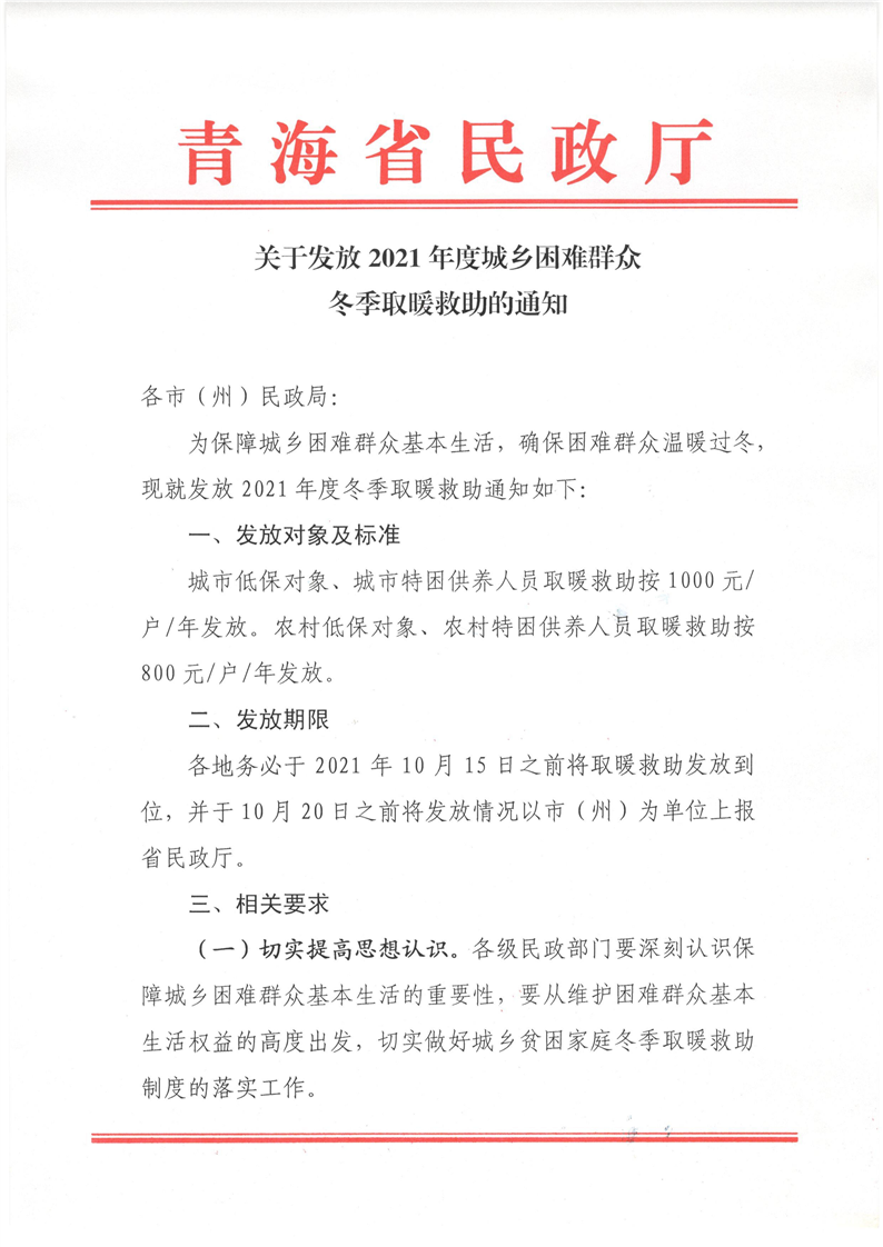 关于发放2021年度城乡困难群众冬季取暖救助的通知