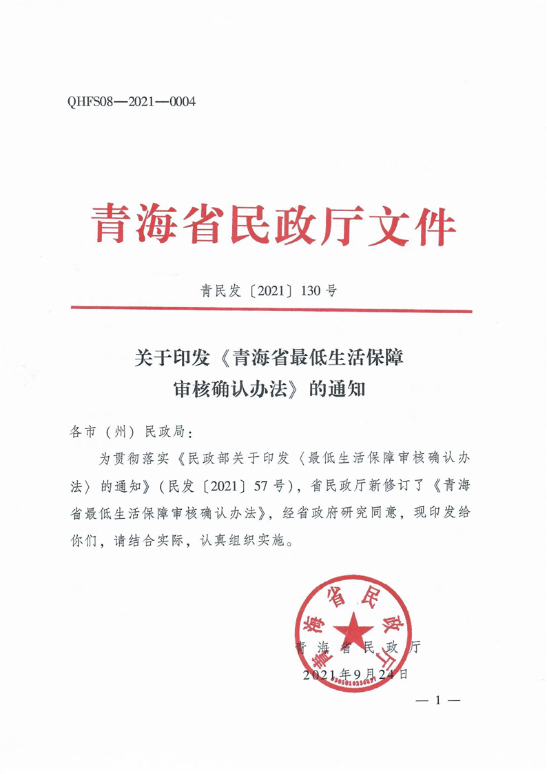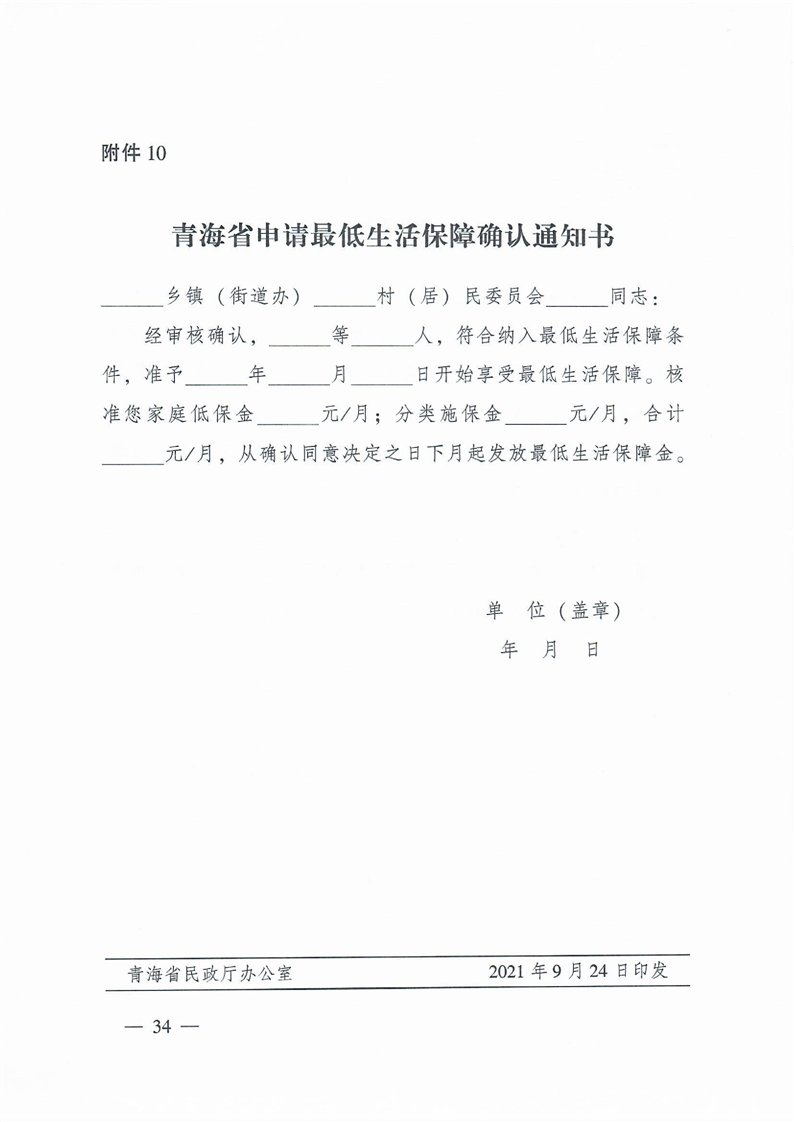 4.《青海省最低生活保障申请审核确认表》;