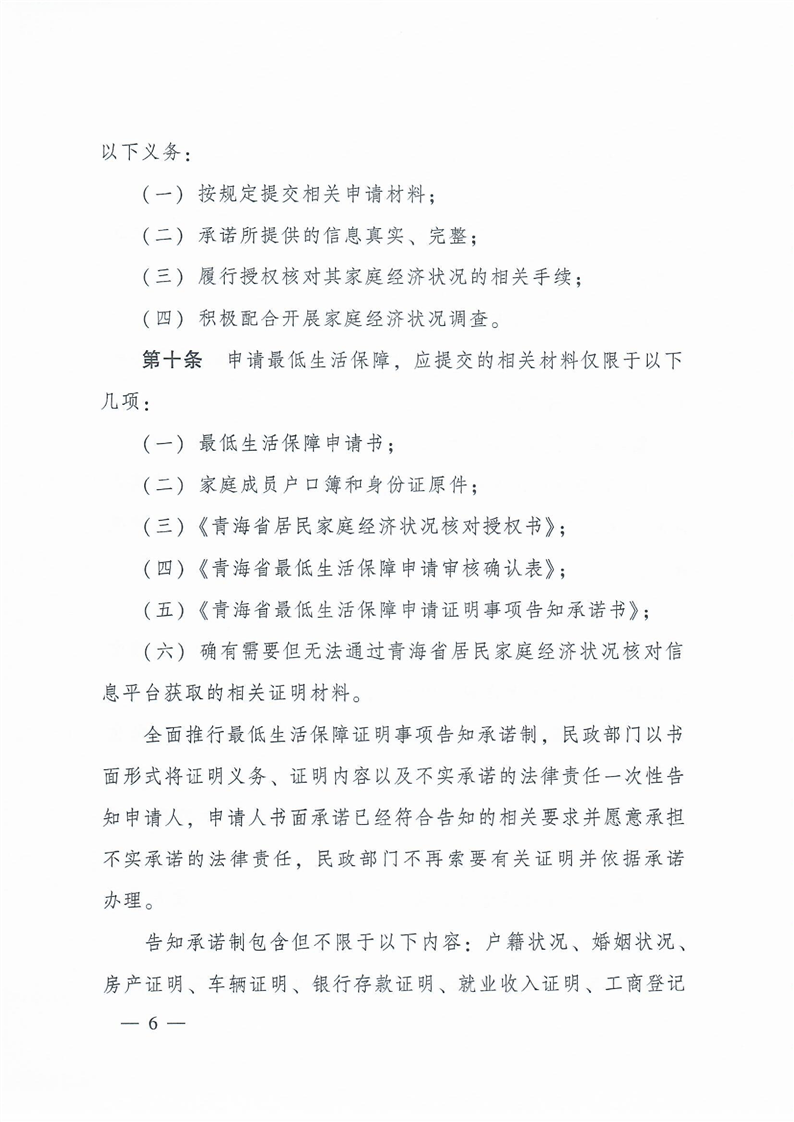 5.《青海省最低生活保障申请证明事项告知承诺书》;