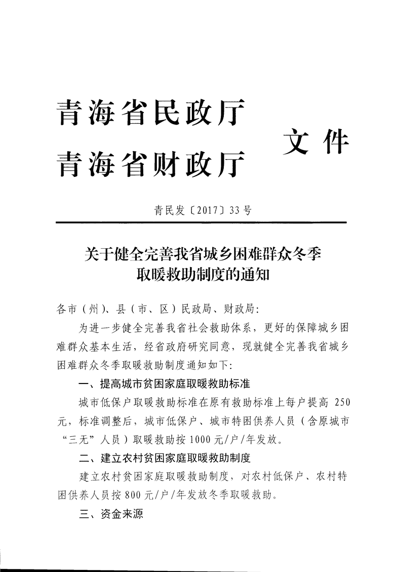 政策文号:青民发〔2017〕33号
