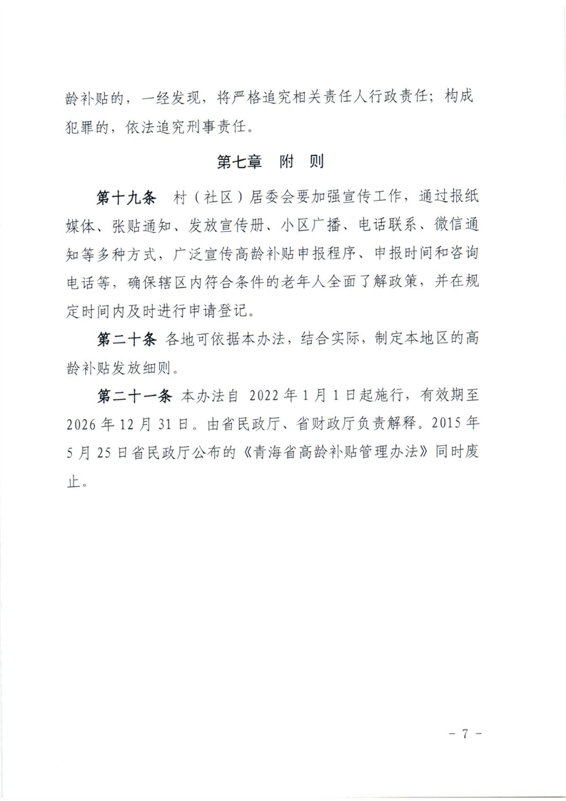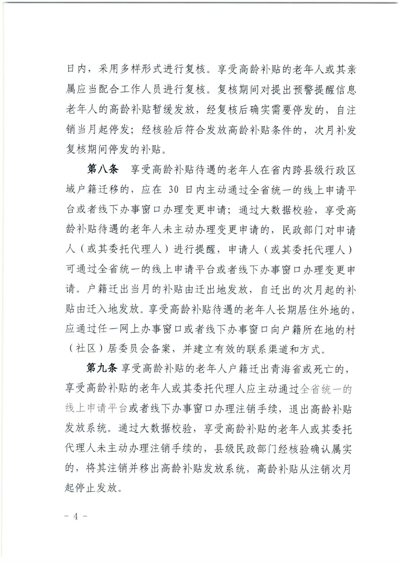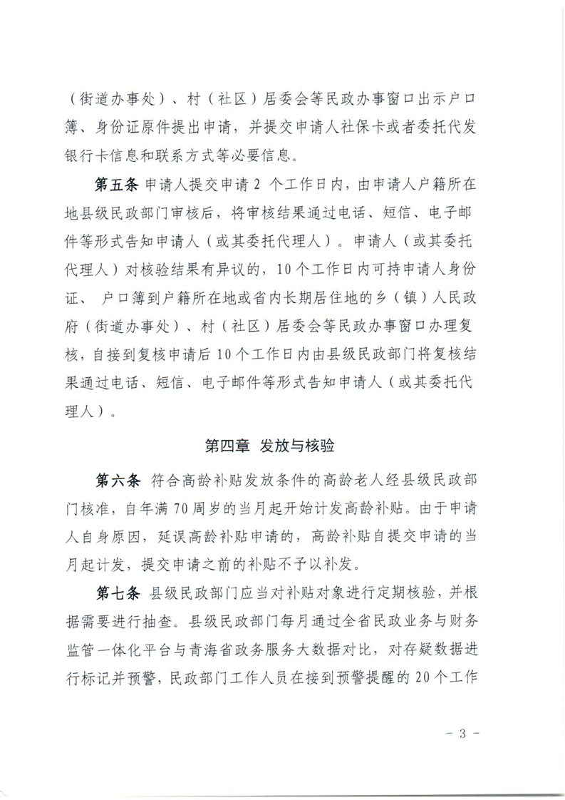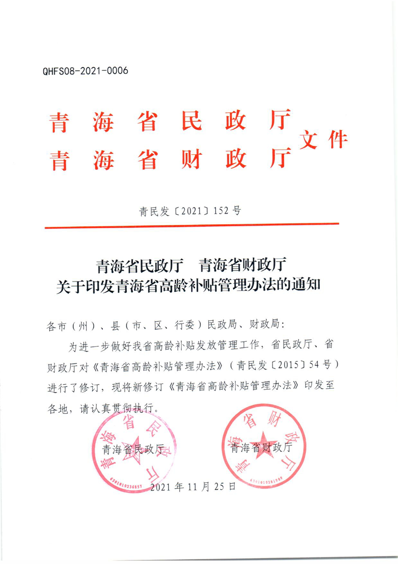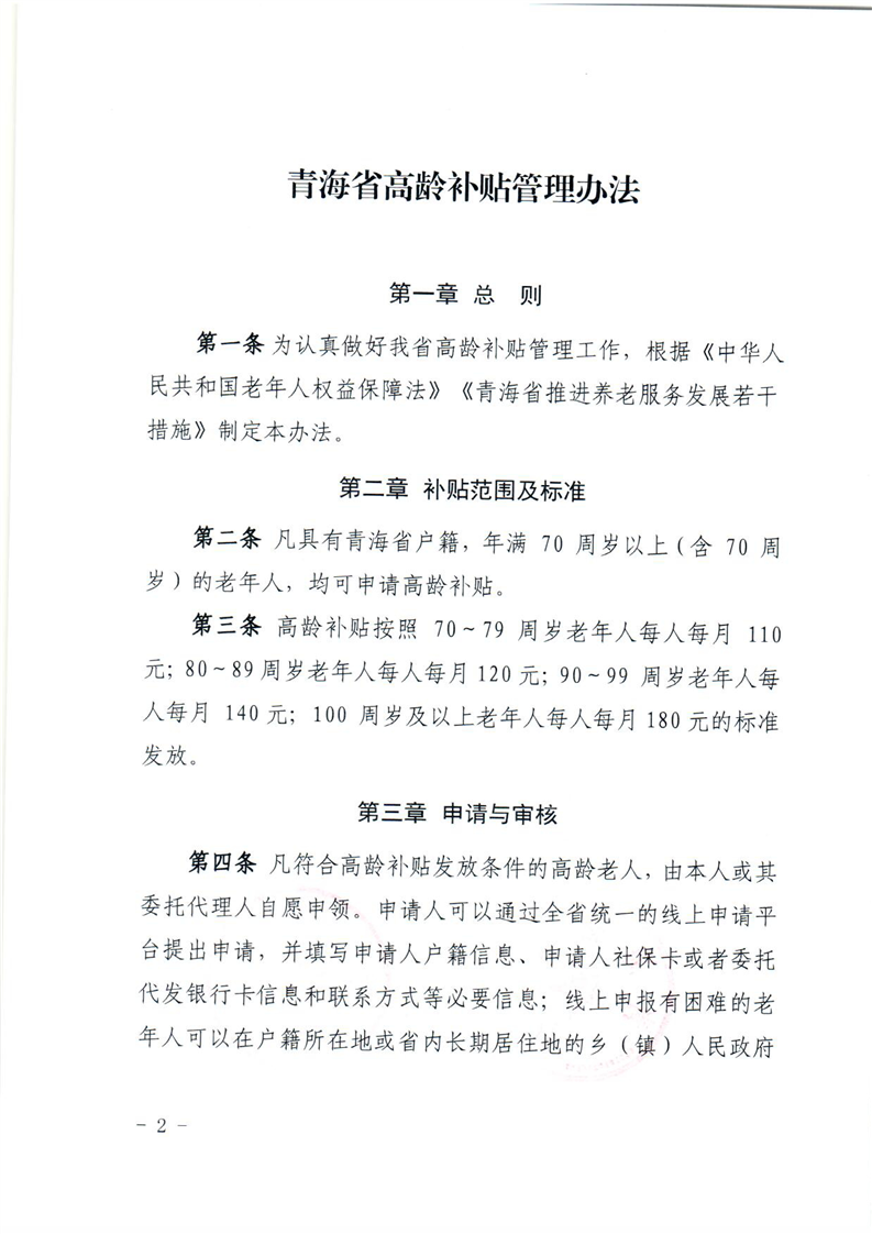 关于印发青海省高龄补贴管理办法的通知
