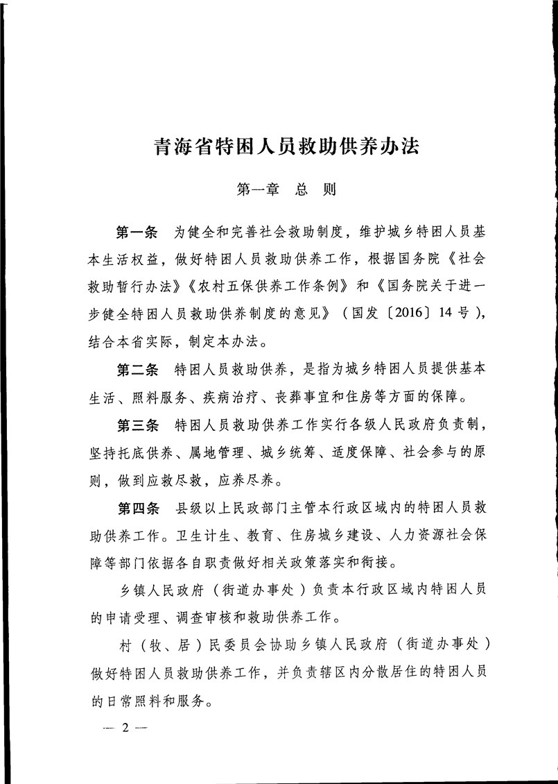 青海省人民政府关于印发青海省特困人员救助供养办法的通知
