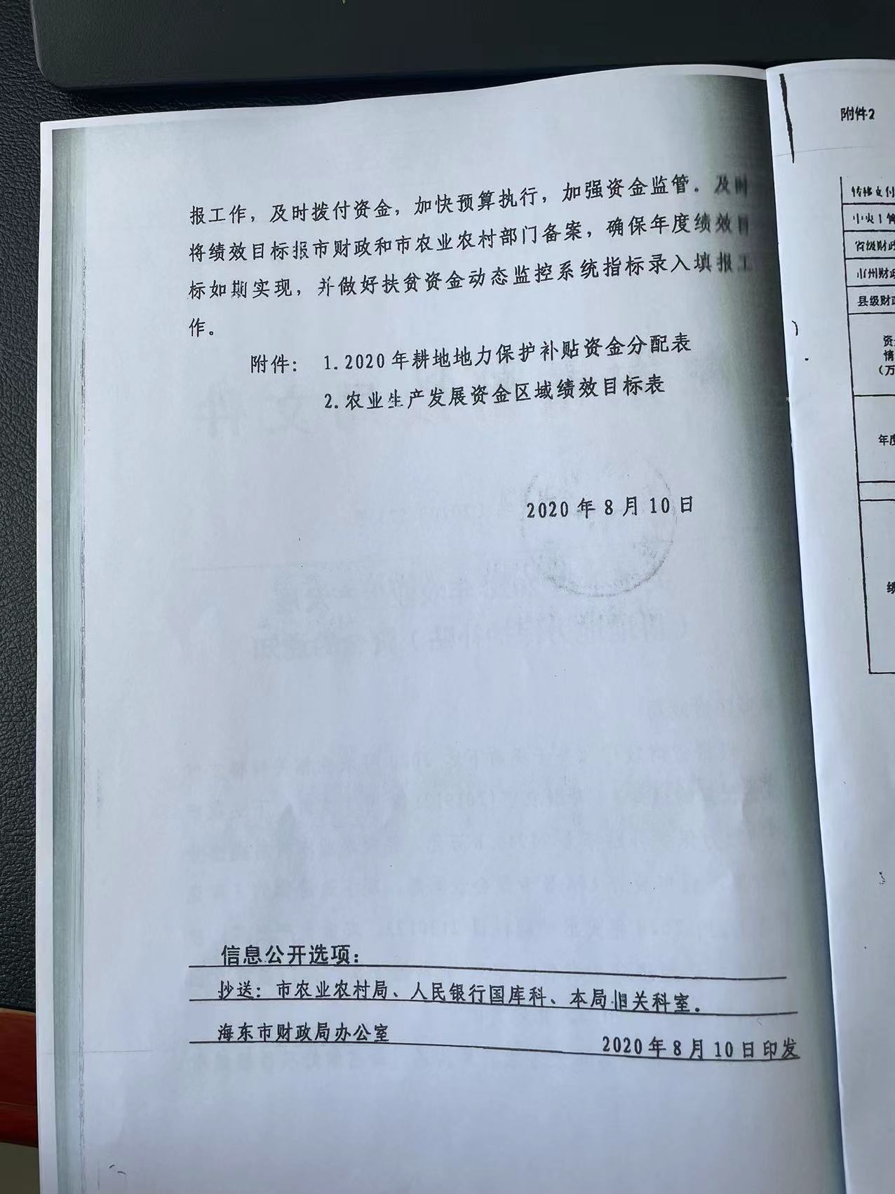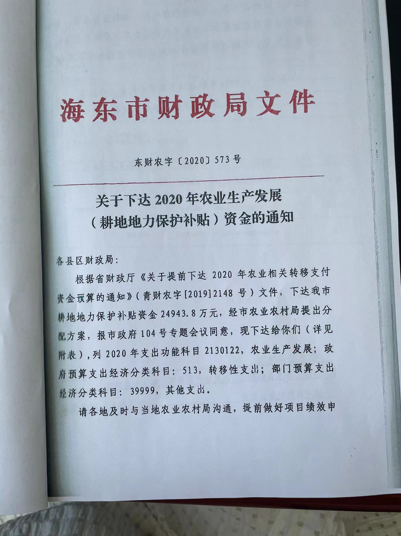 关于下达2020年农业生产发展(耕地地力保护补贴)资金的通知