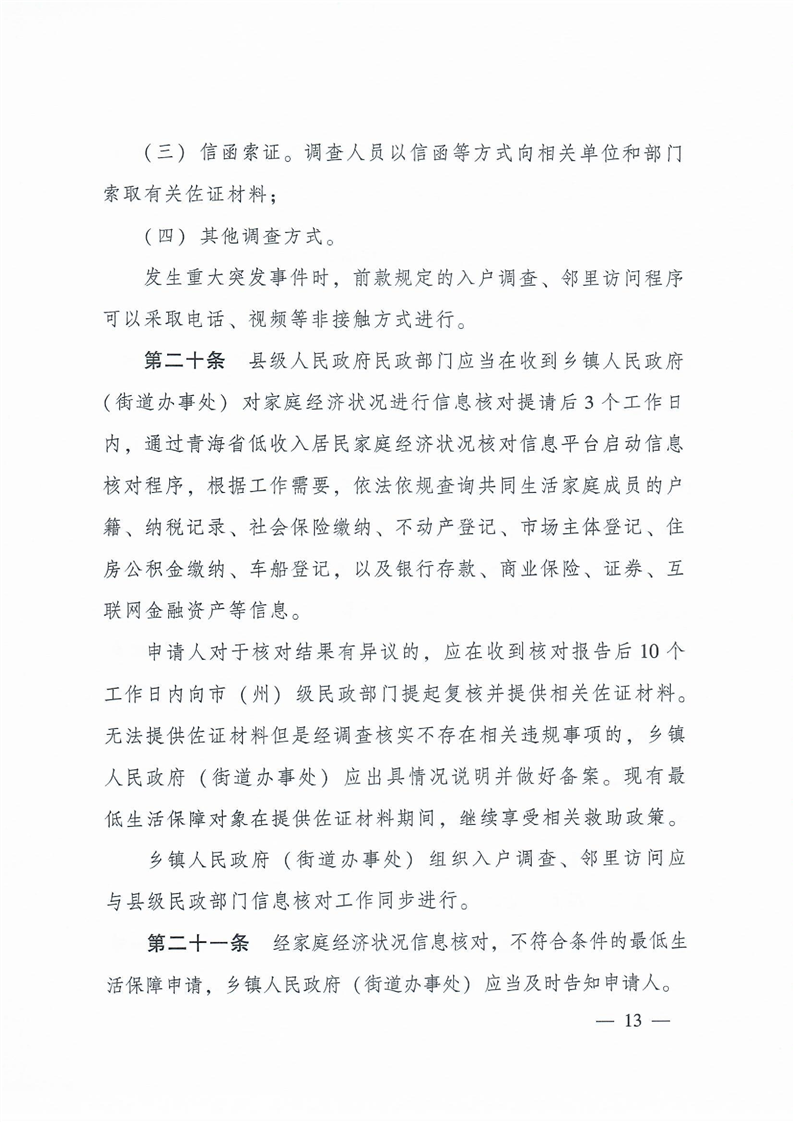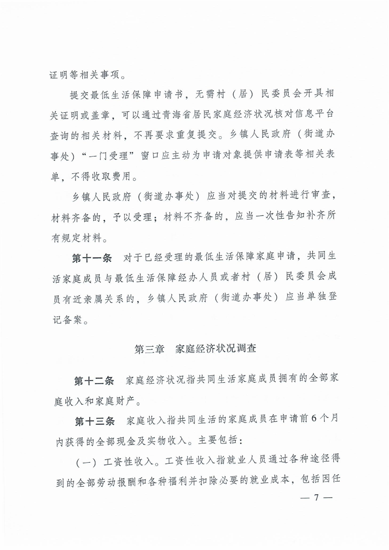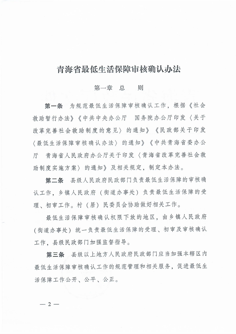 关于印发《青海省最低生活保障审核确认办法》的通知