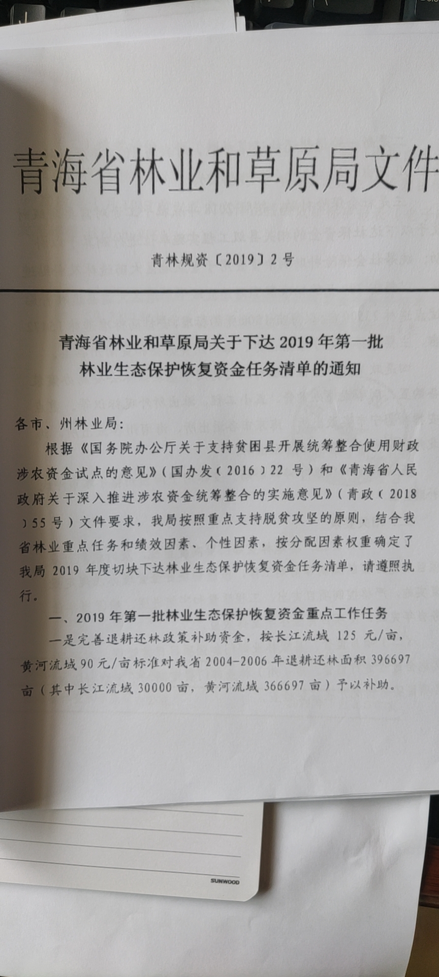 青海省林业和草原局关于下达2019年第一批林业生态保护恢复资金任务清单的通知