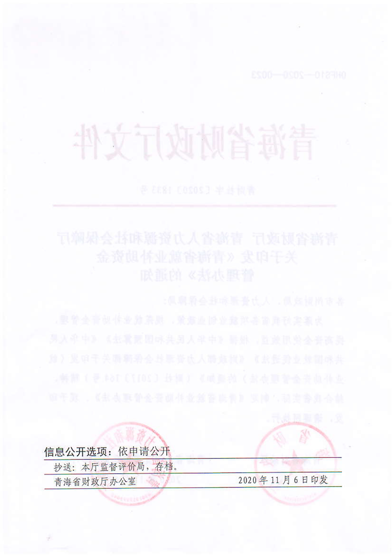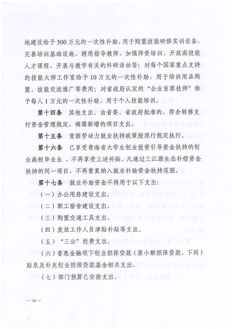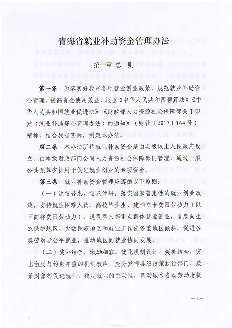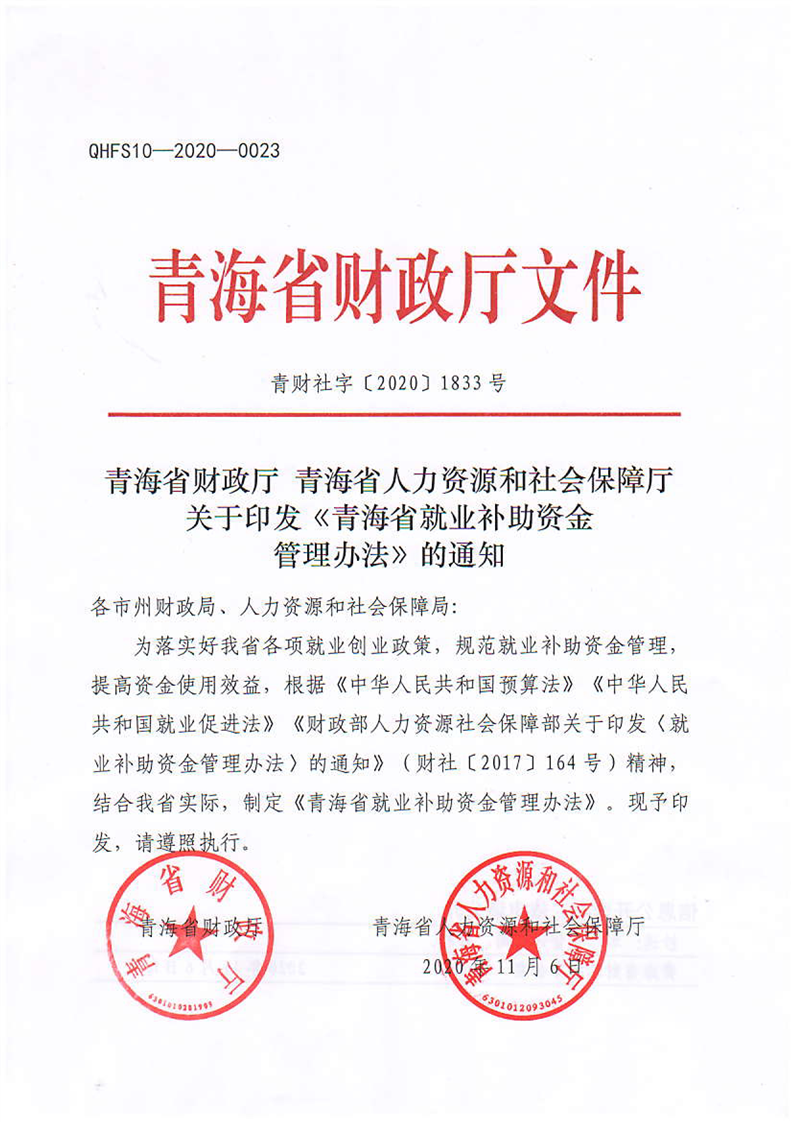 青海省财政厅 青海省人力资源和社会保障厅关于印发《青海省就业补助资金管理办法》的通知
