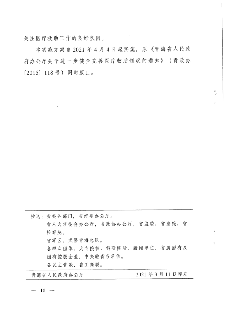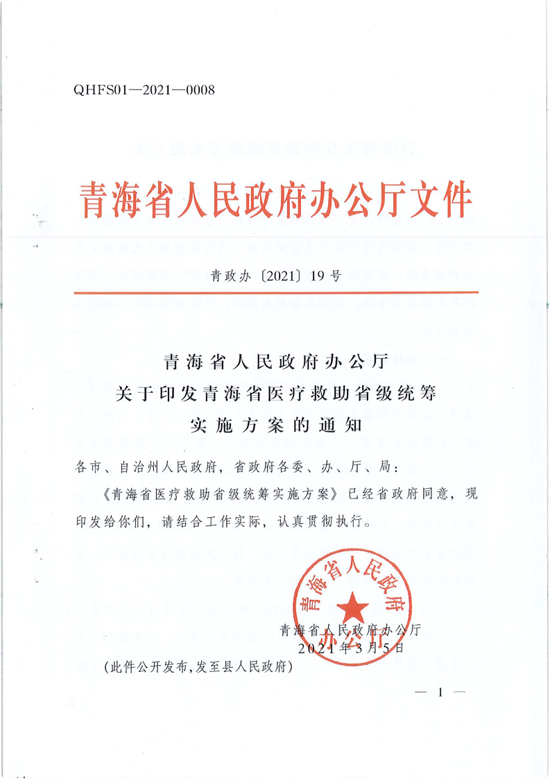 关于印发青海省医疗救助省级统筹实施方案的通知