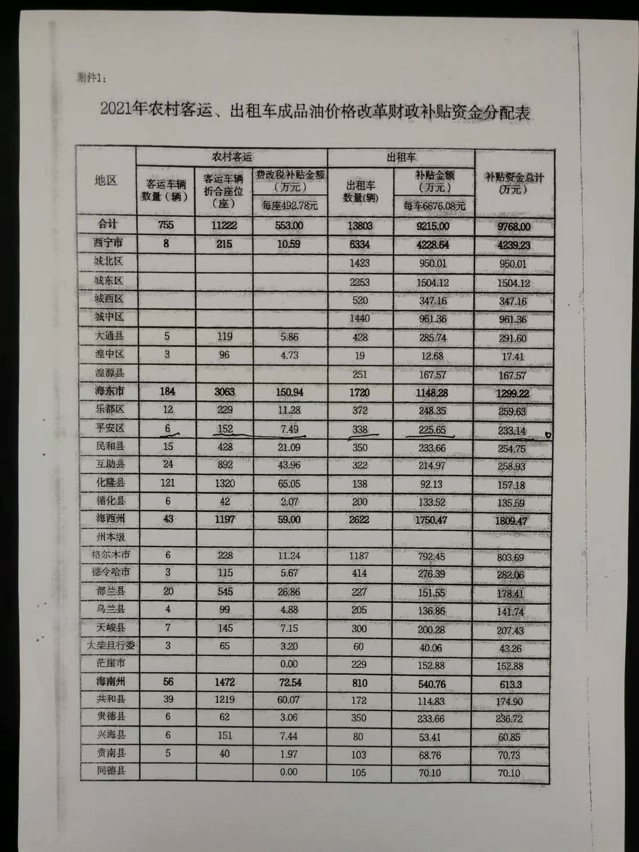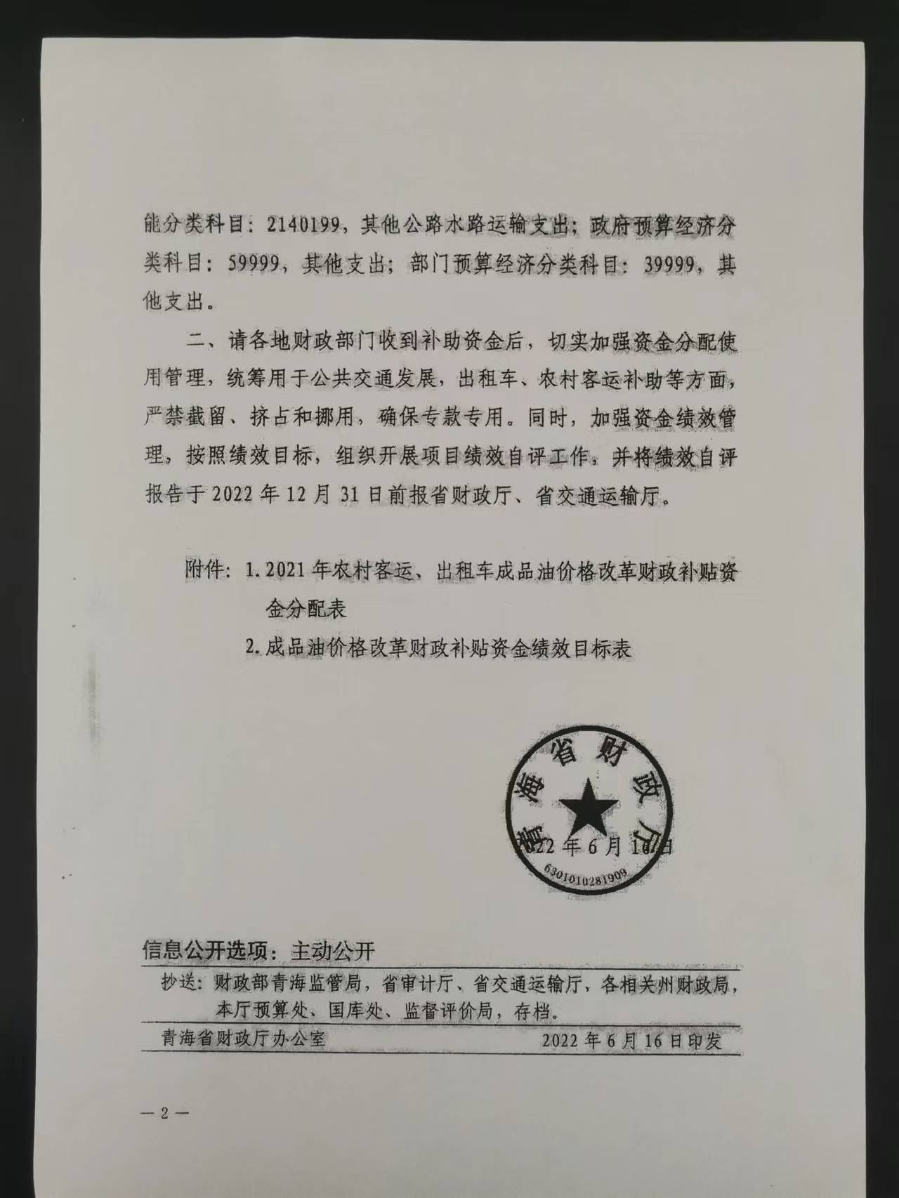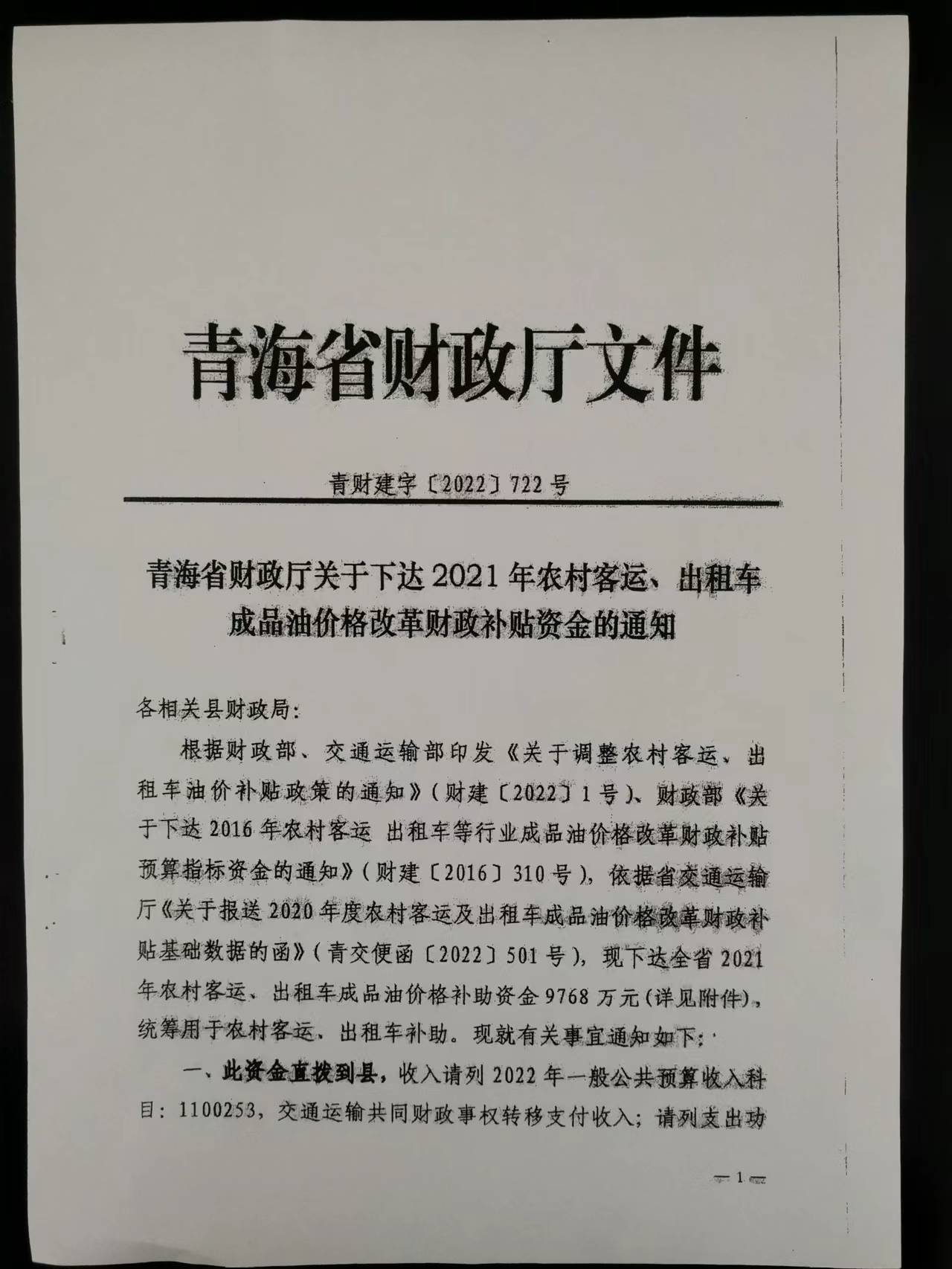 关于下达2021年农村客运、出租车油价补贴资金的通知