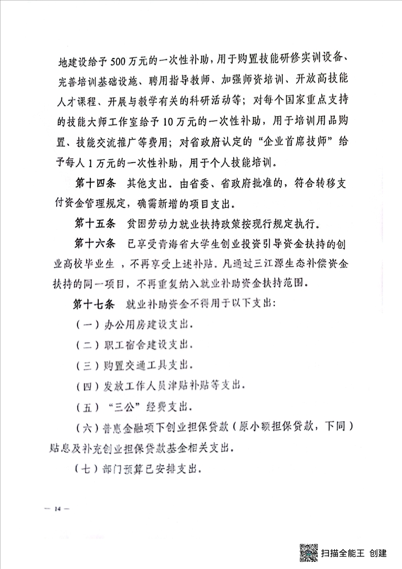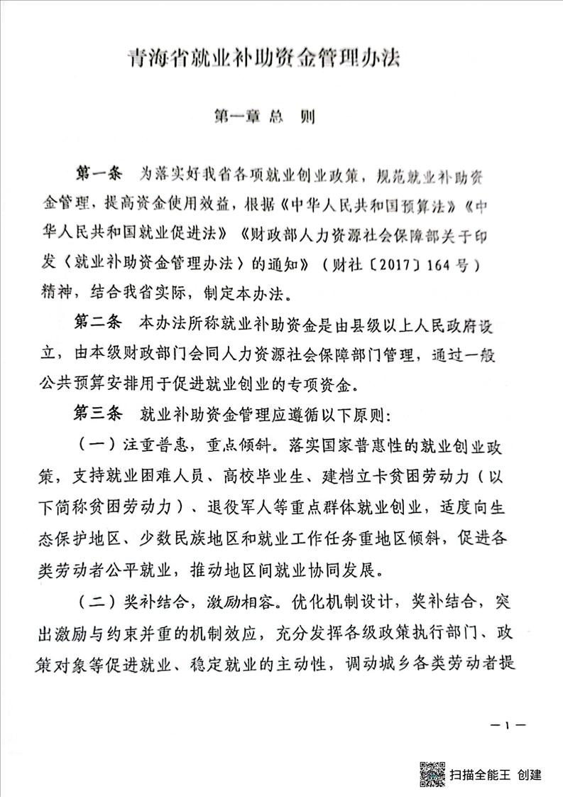 青海省财政厅 青海省人力资源和社会保障厅关于印发《青海省就业补助资金管理办法》的通知