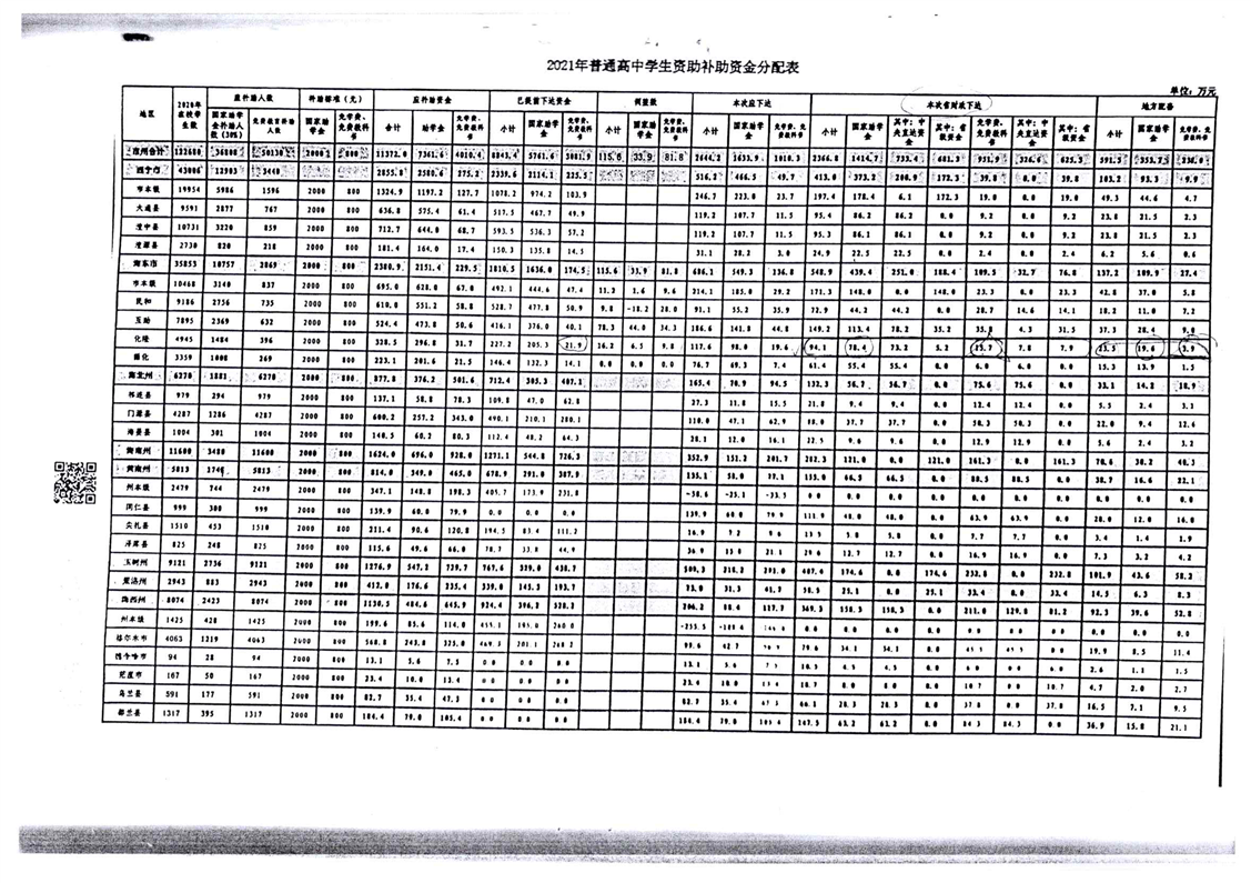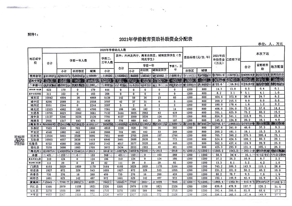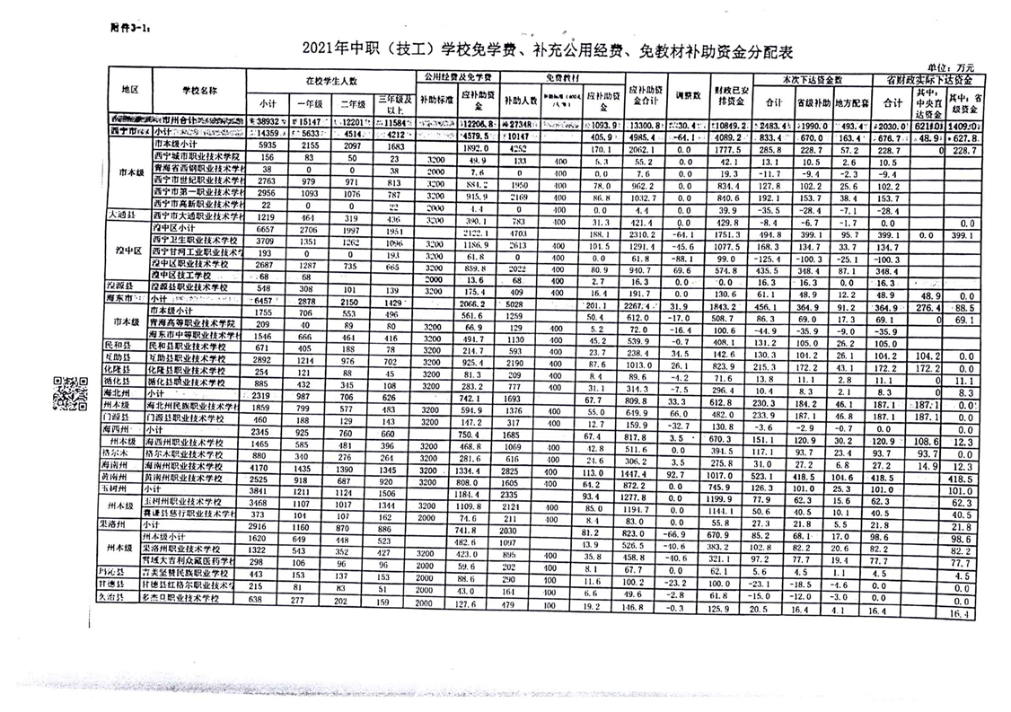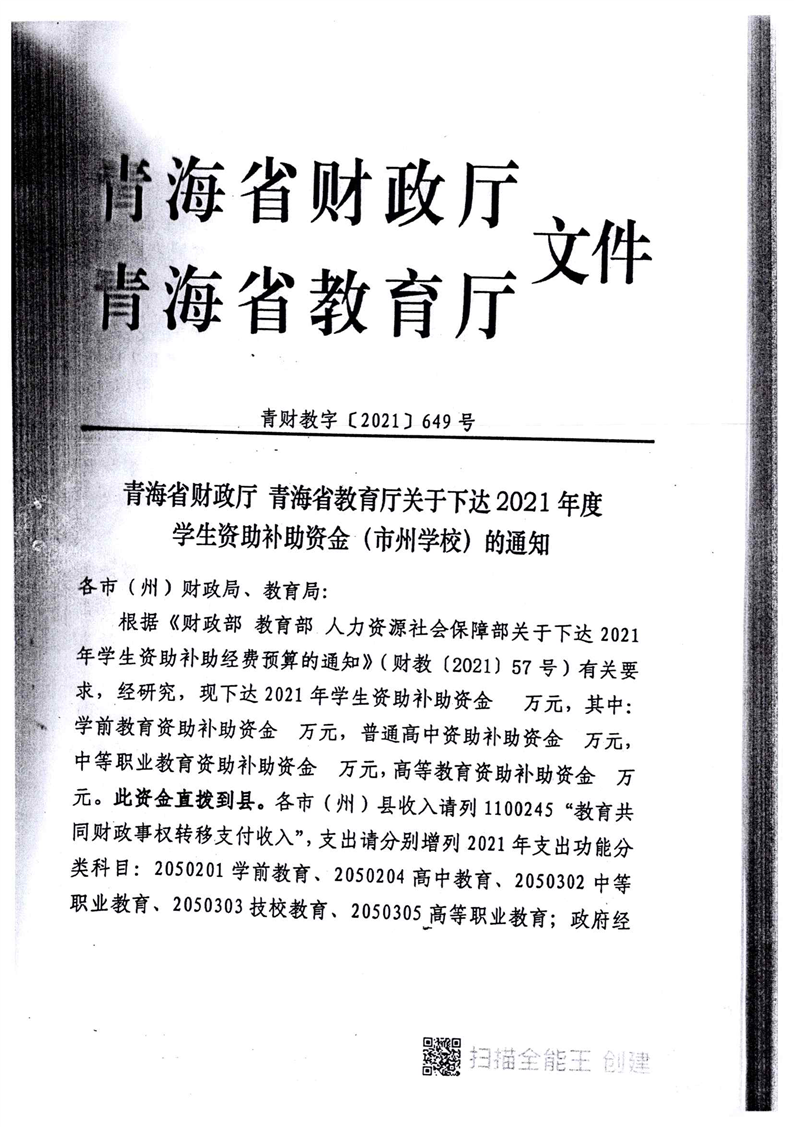 青海省财政厅青海省教育厅关于下达2021年度学生资助补助资金(市州学校)的通知