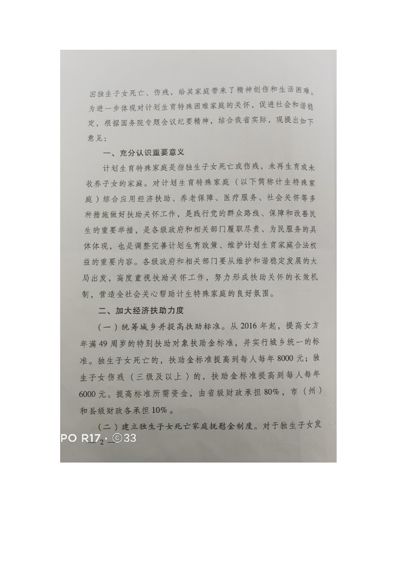 关于进一步加强计划生育特殊家庭扶助关于工作的意见