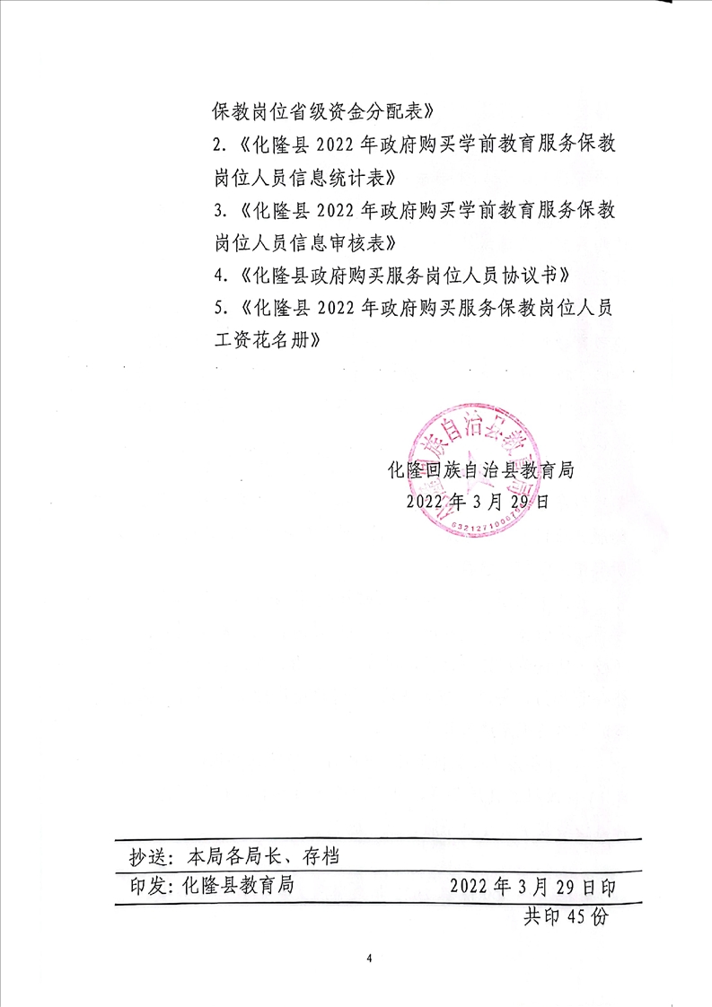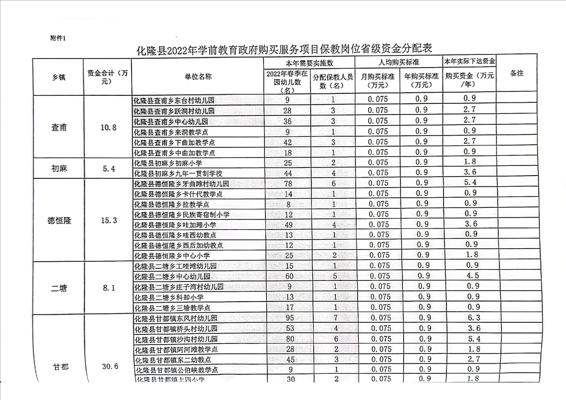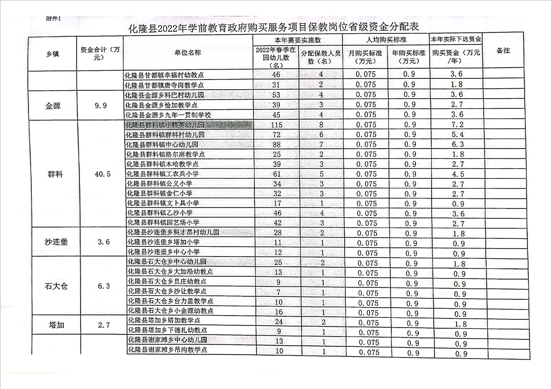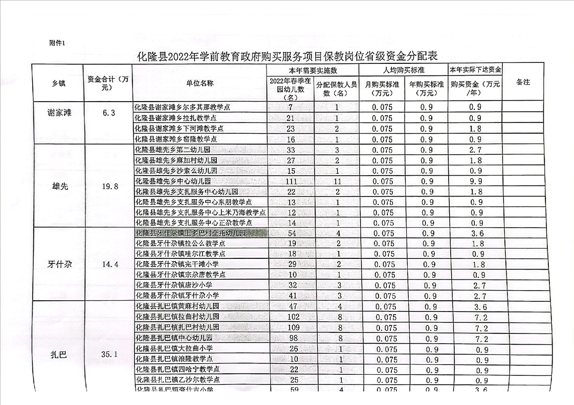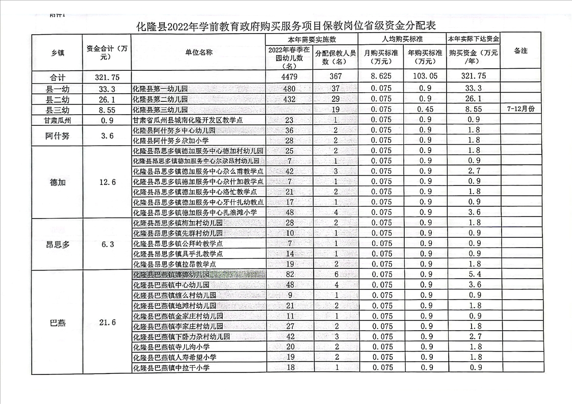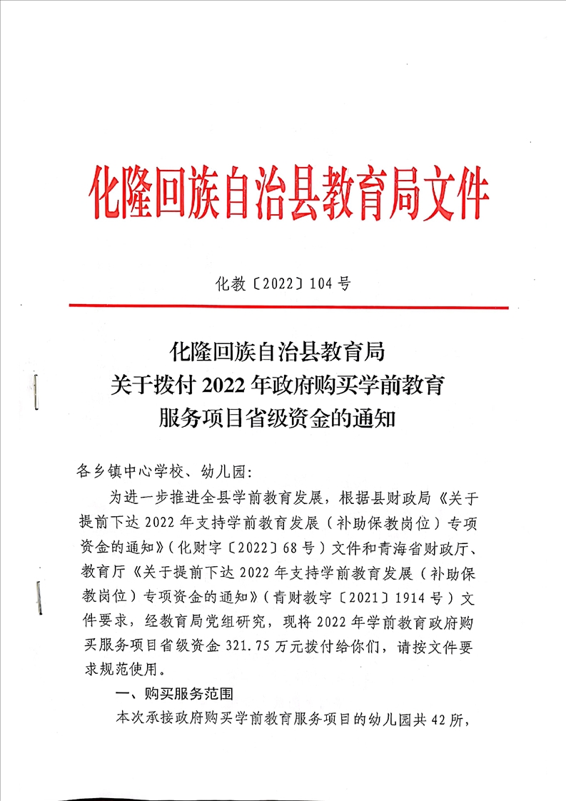 化隆回族自治县教育局关于拨付2022年政府购买学前教育服务项目省级资金的通知