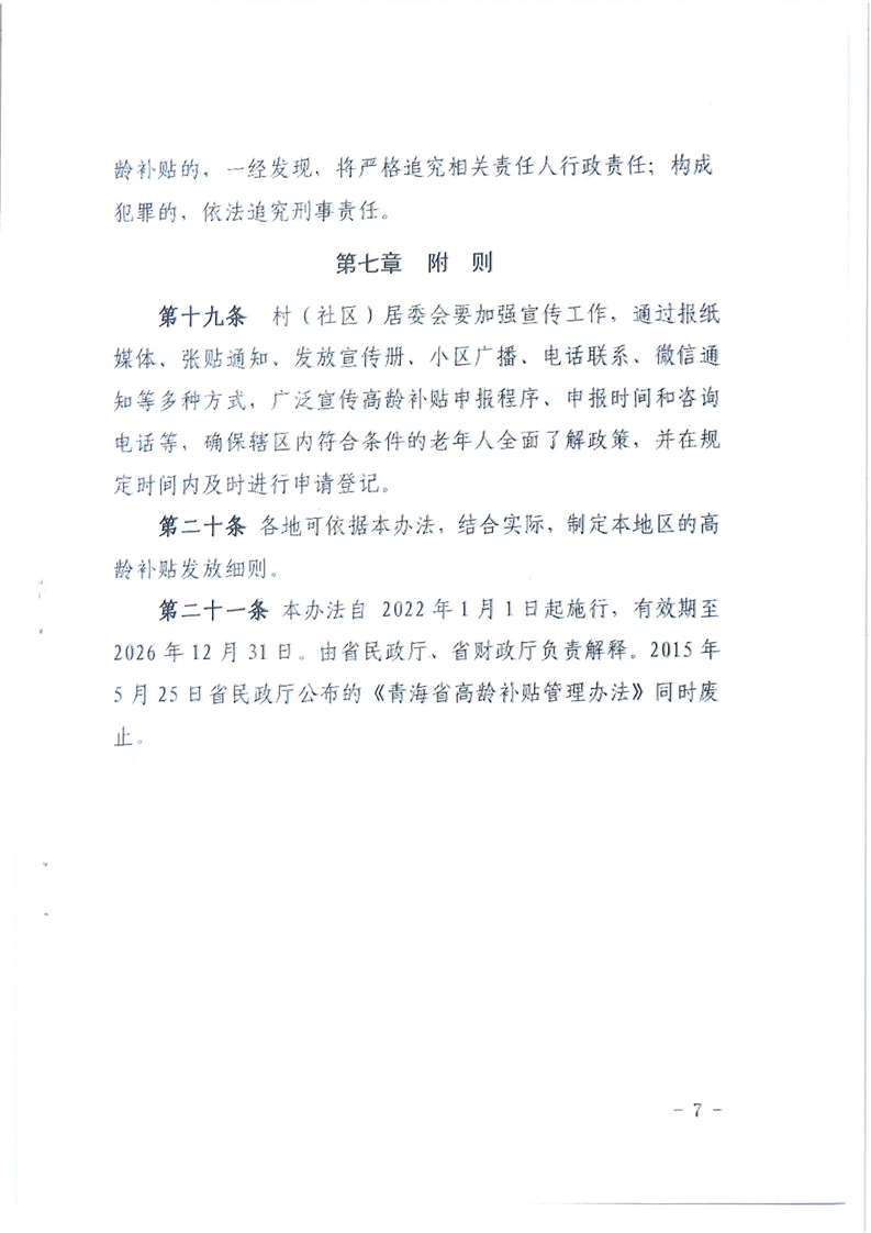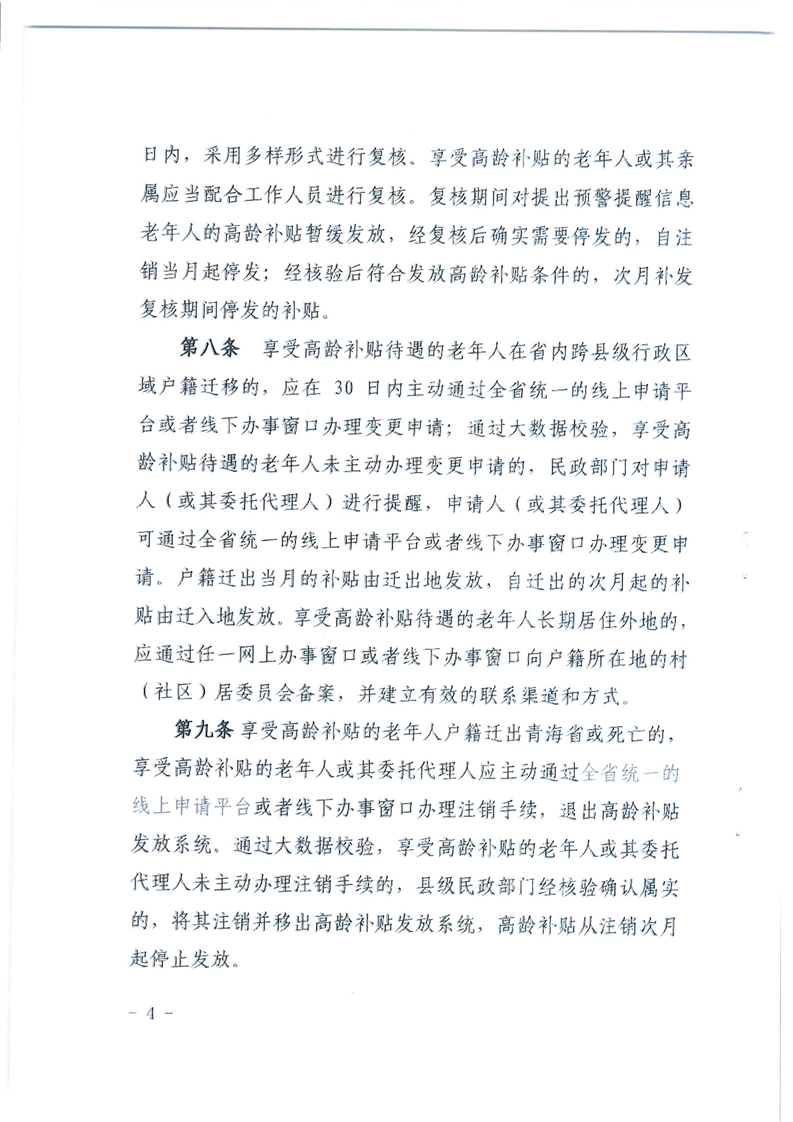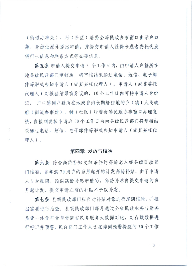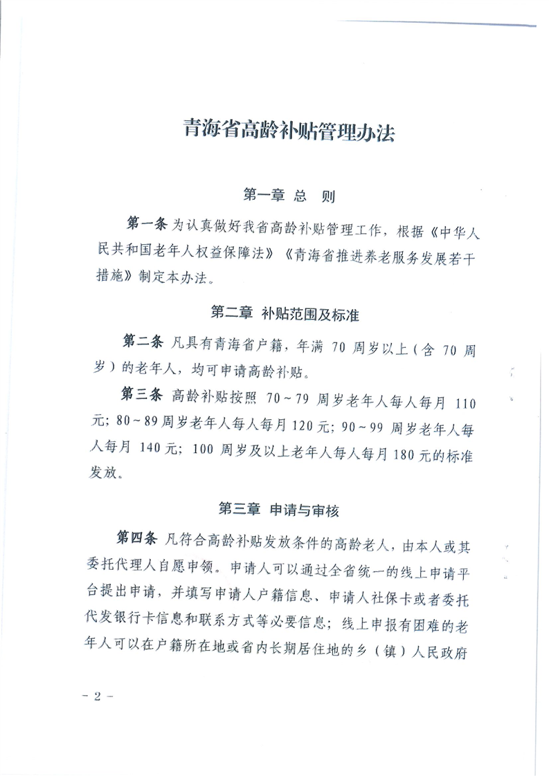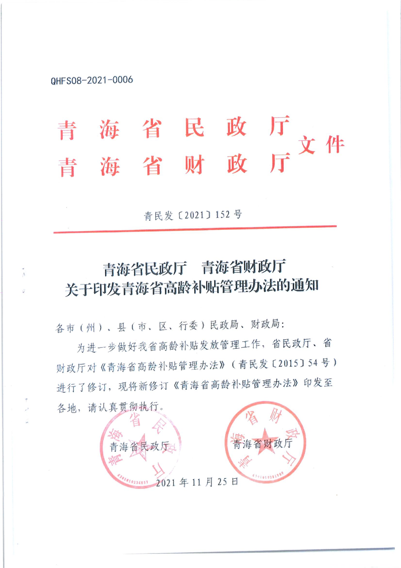 关于印发青海省高龄补贴管理办法的通知