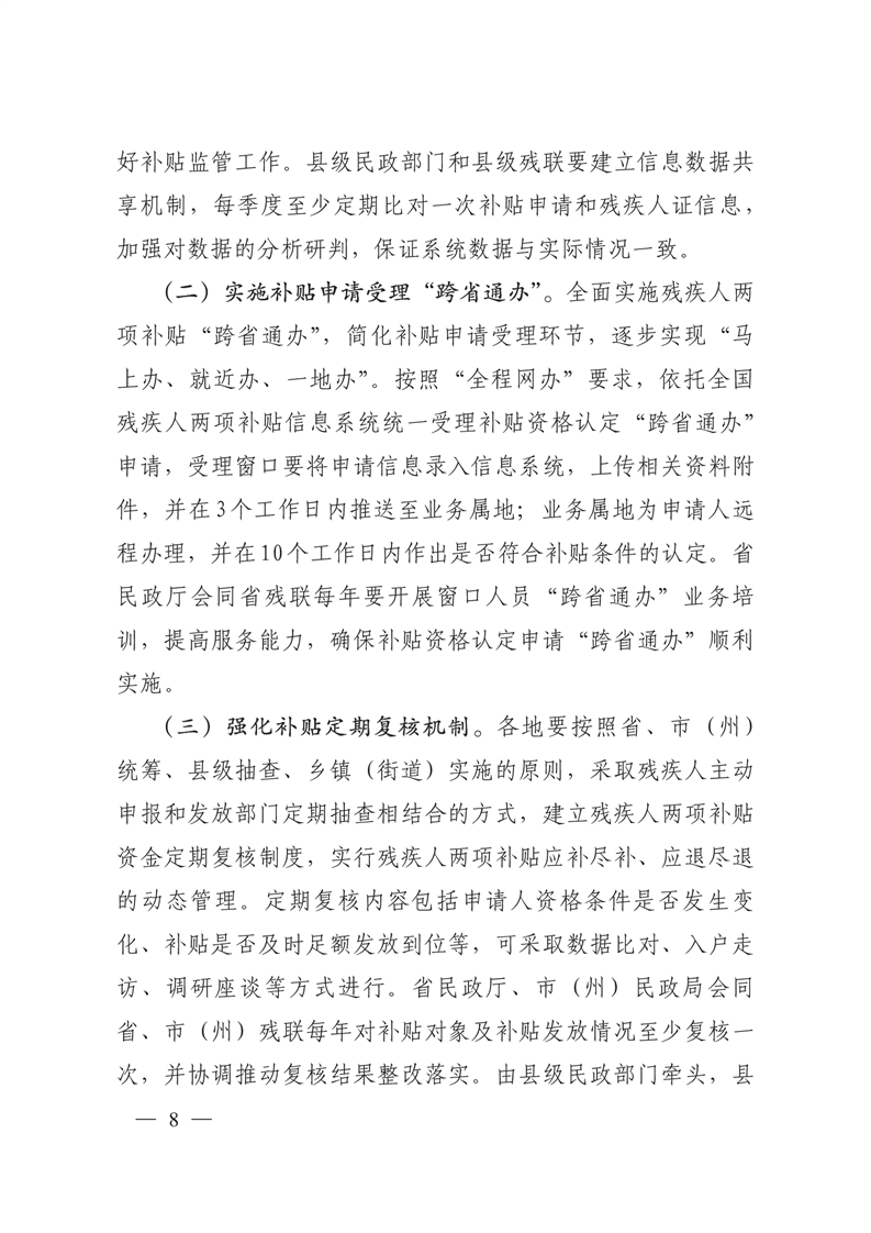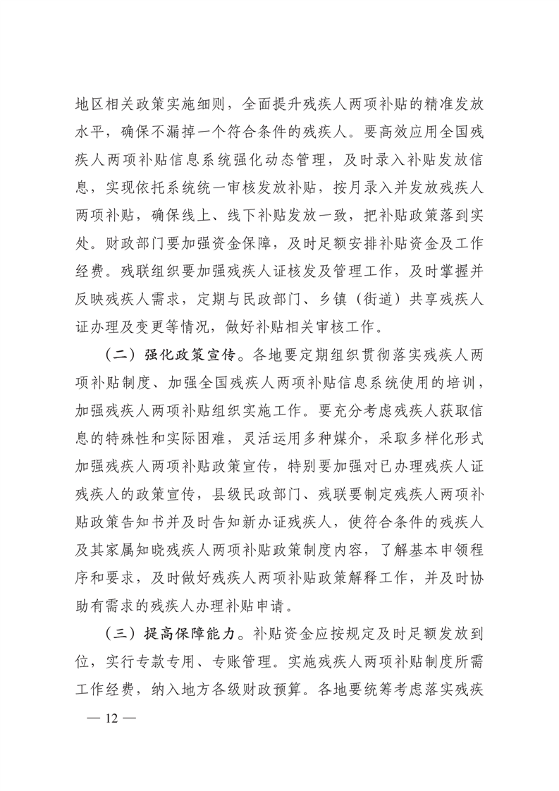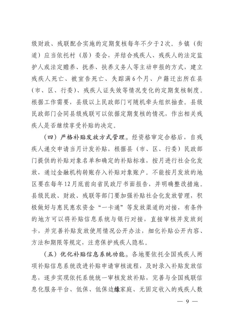关于进一步完善困难残疾人生活补贴和重度残疾人护理补贴制度的实施意见