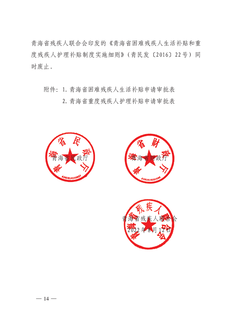 单位:青海省民政厅、青海省财政厅、青海省残疾人联合会