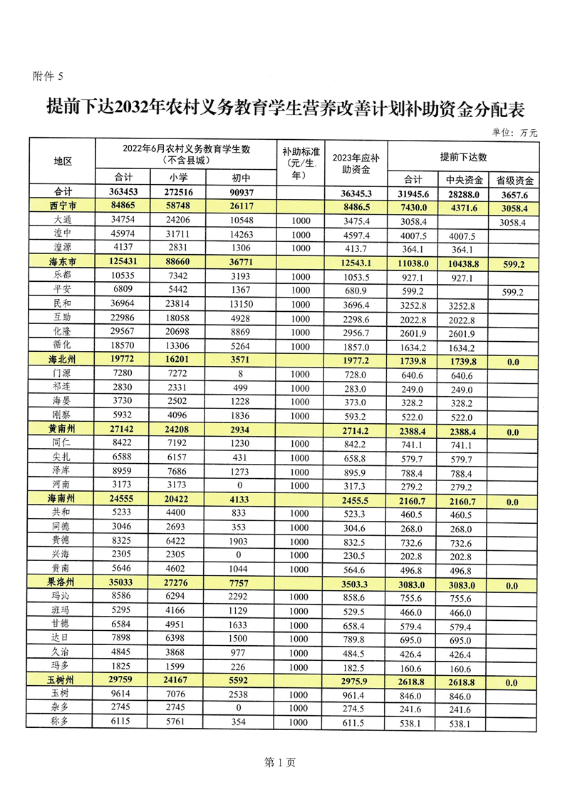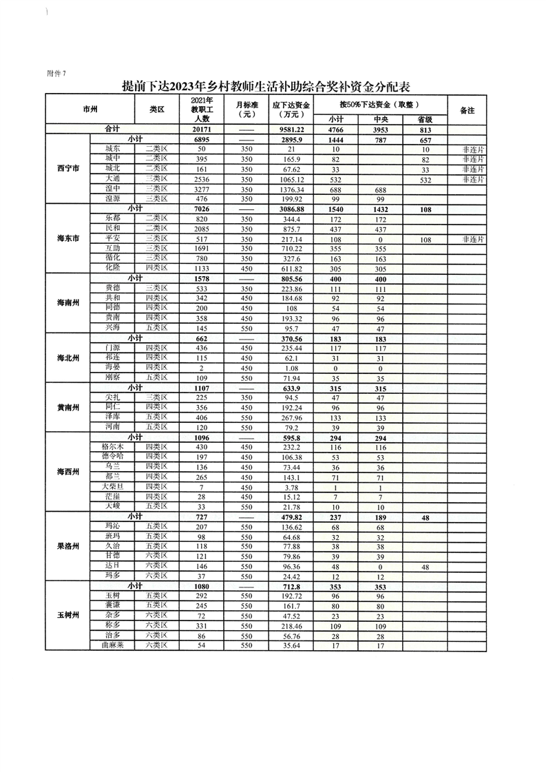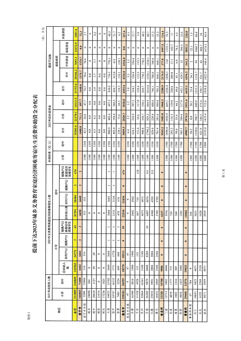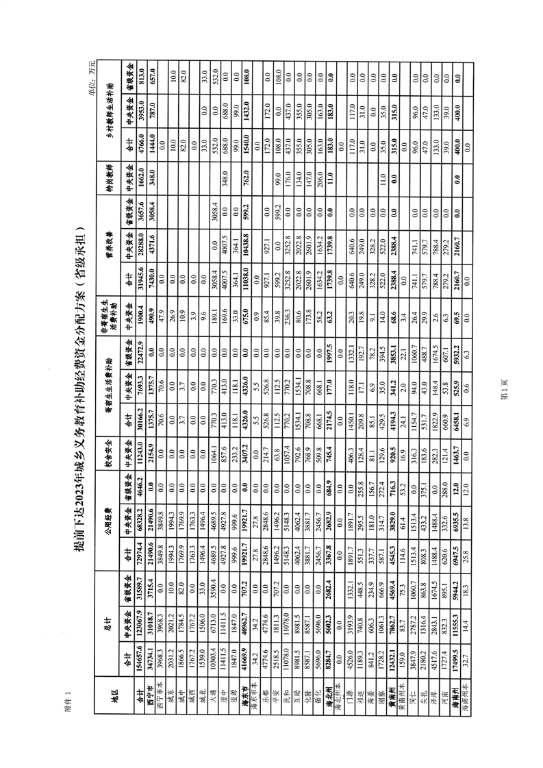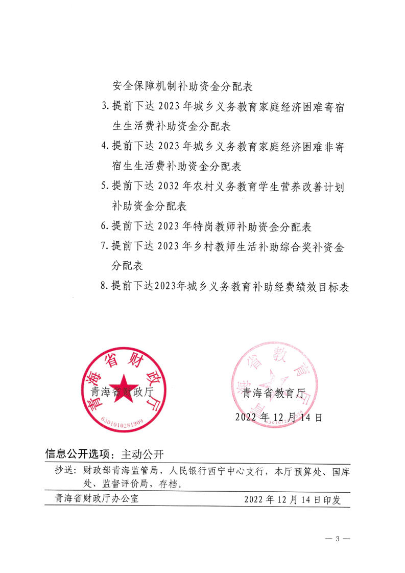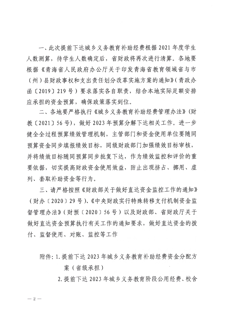 青海省财政厅青海省教育厅关于提前下达2023年城乡义务教育补助经费的通知