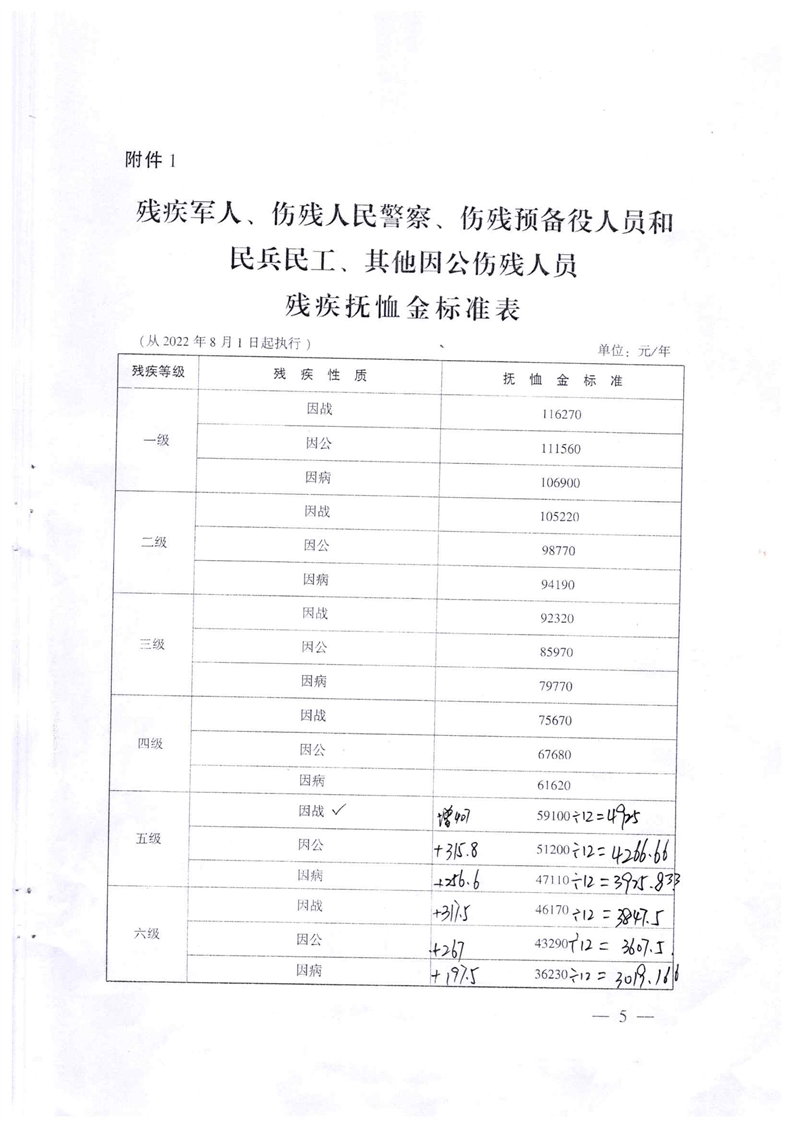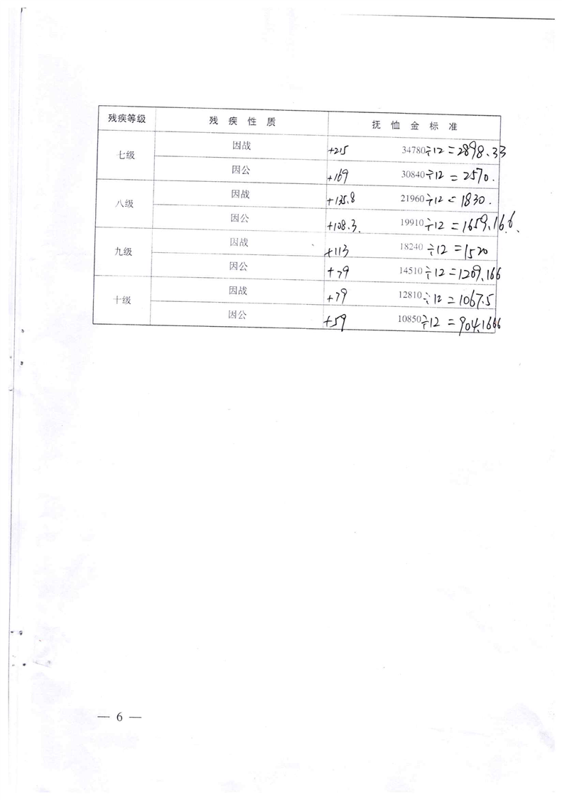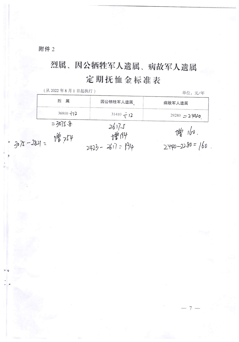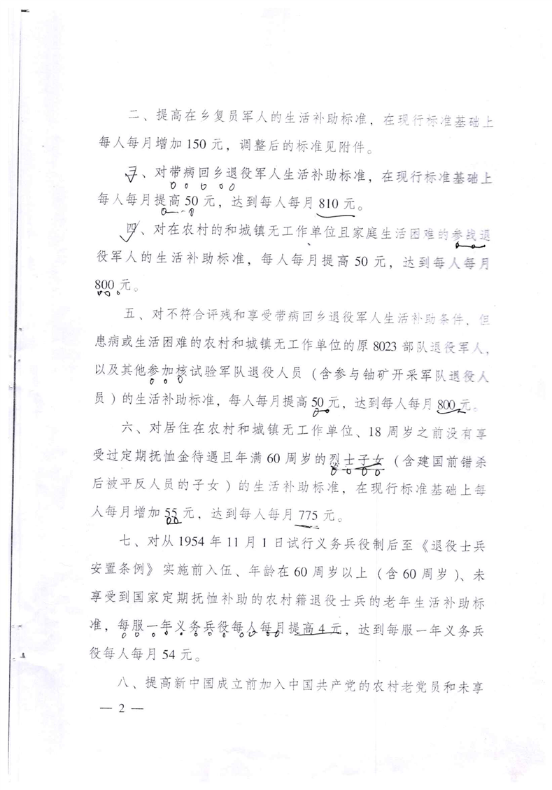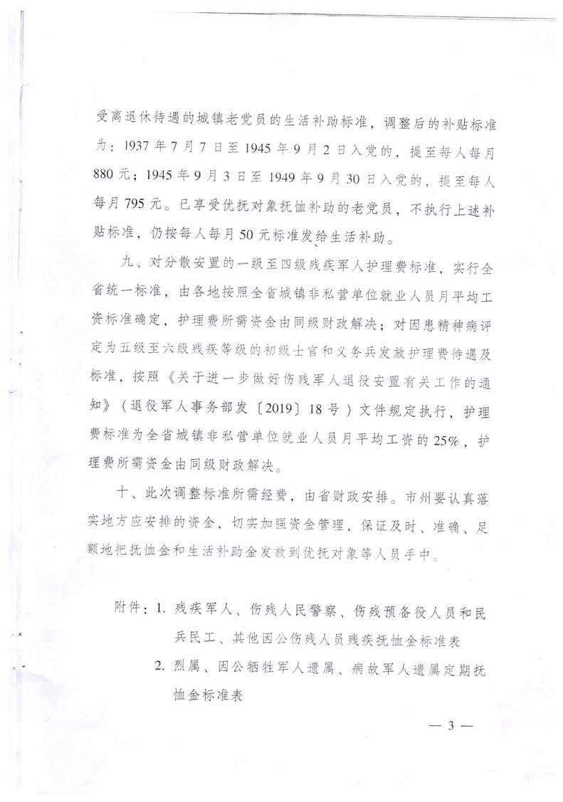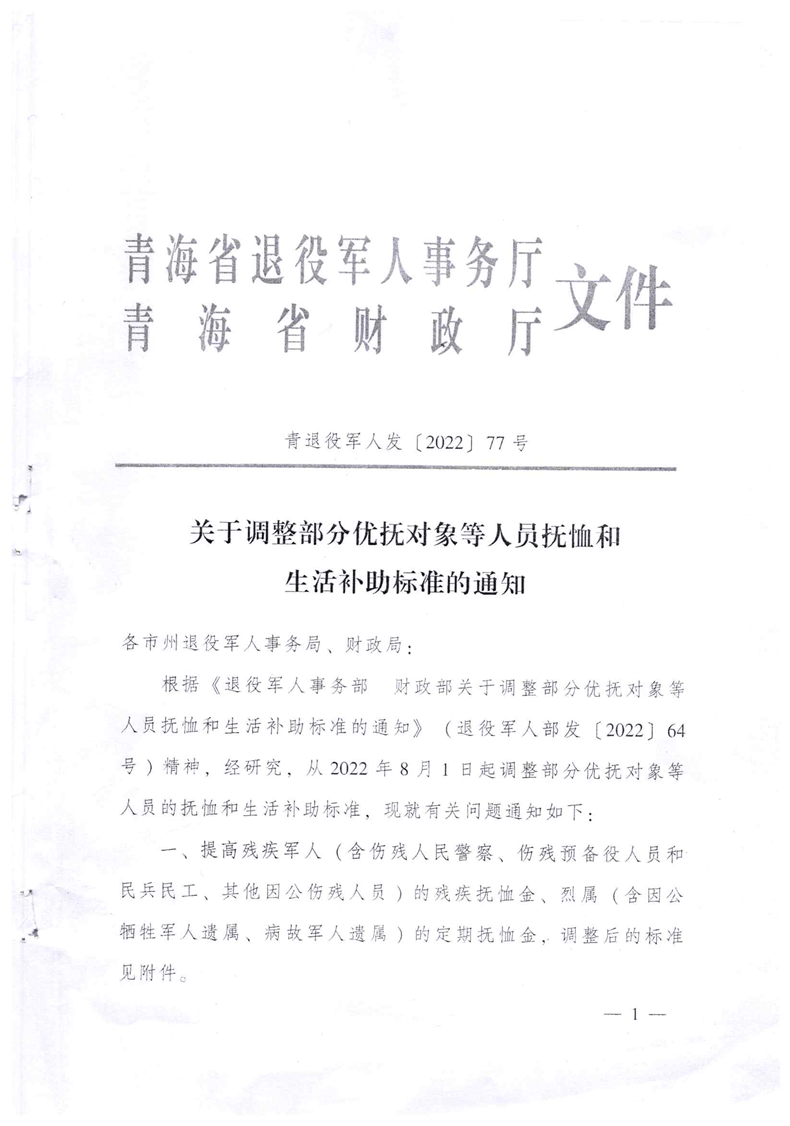 关于调整部分优抚对象等人员抚恤和生活补助标准的通知