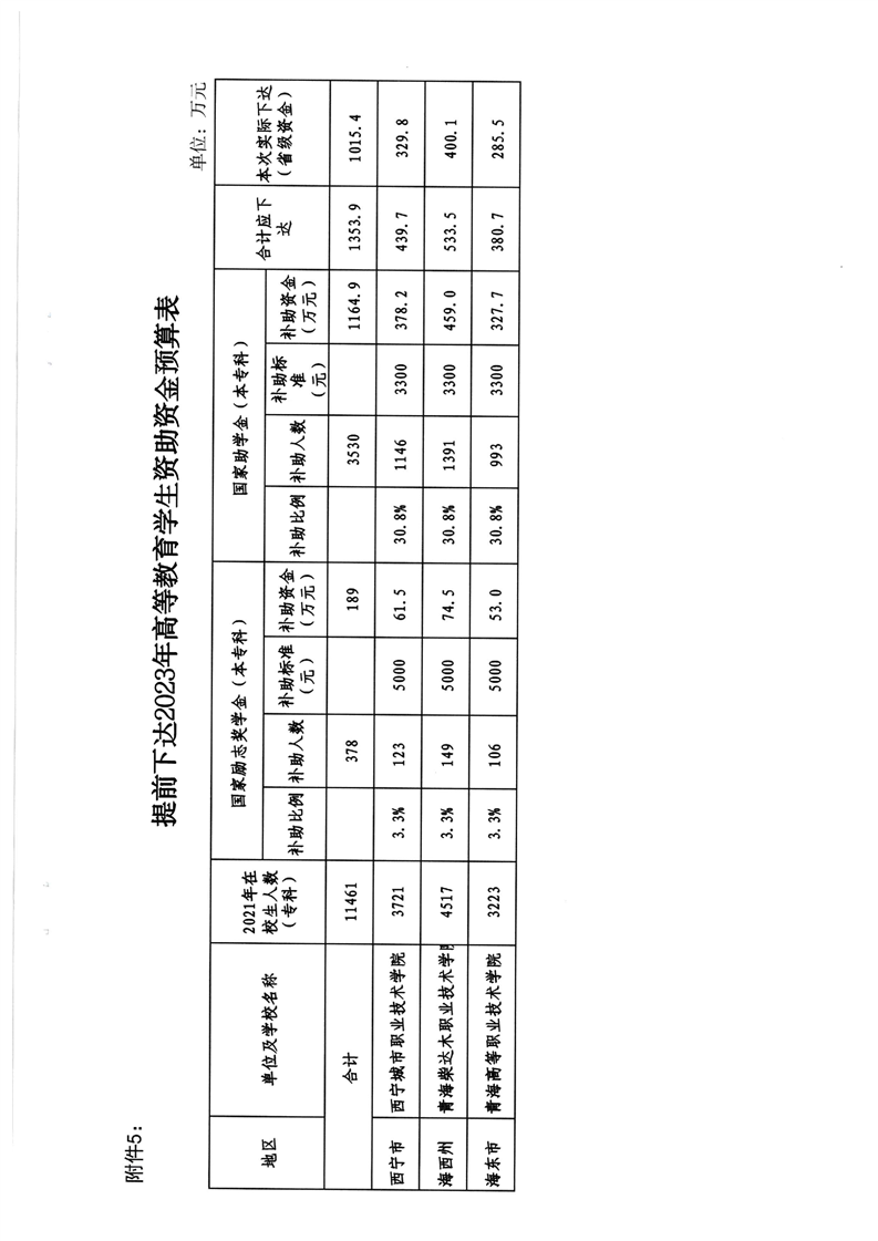 青海省财政厅、青海省教育厅关于提前下达2023年学生资助补助资金的通知
