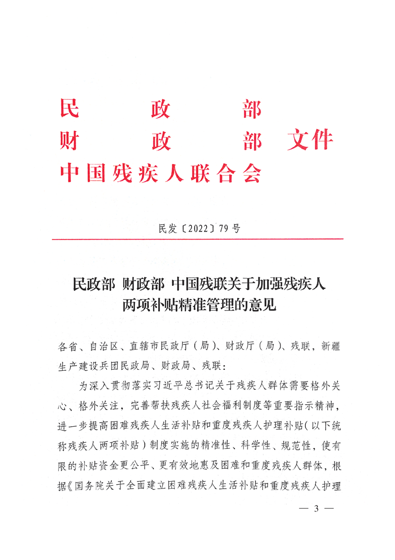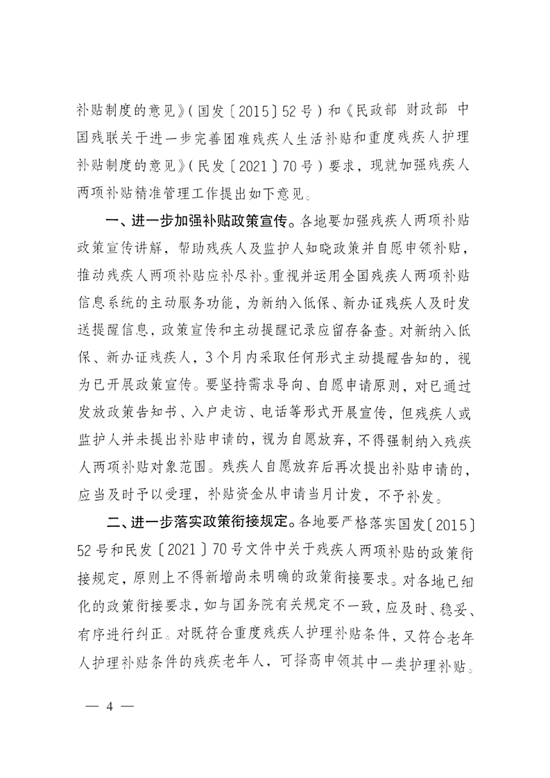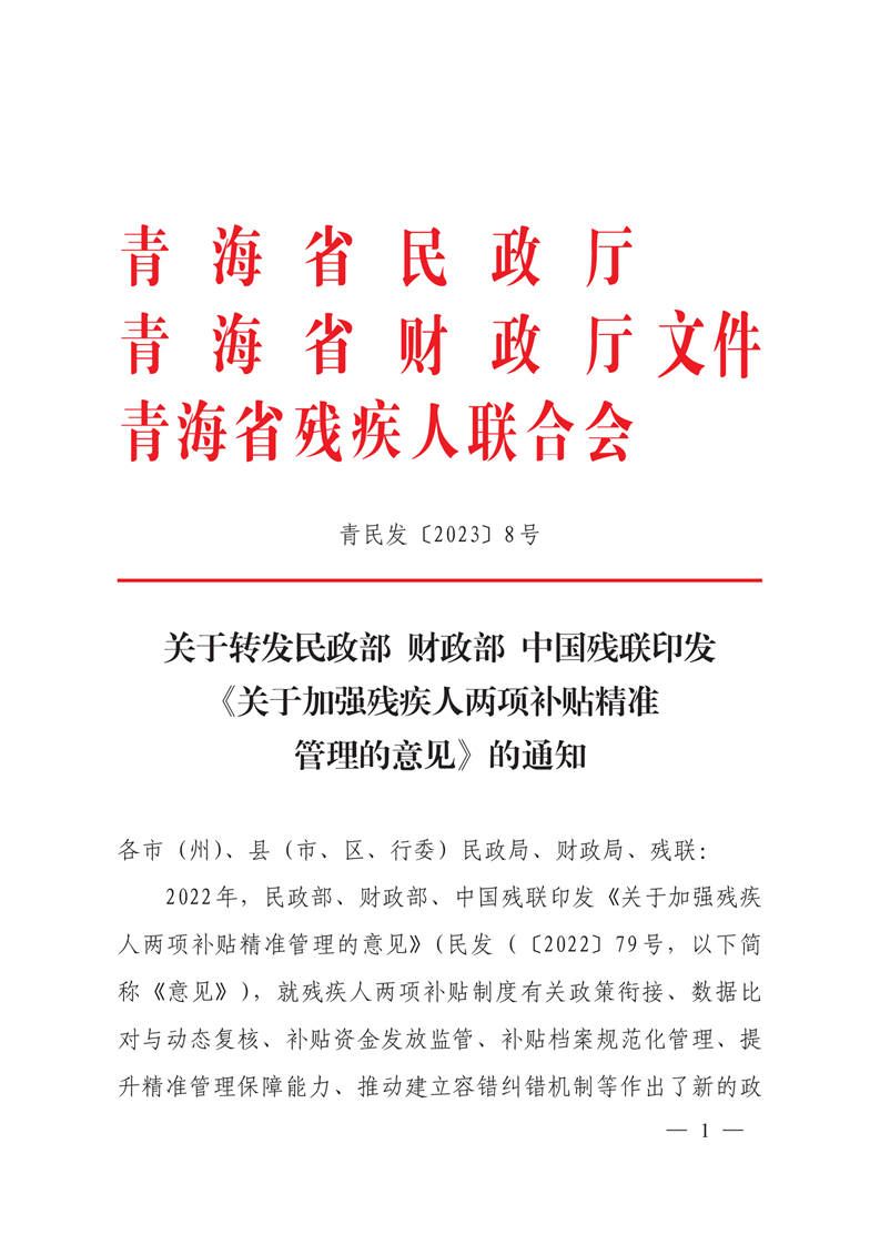 关于转发民政部 财政部 中国残联印发《关于加强残疾人两项补贴精准管理的意见》的通知