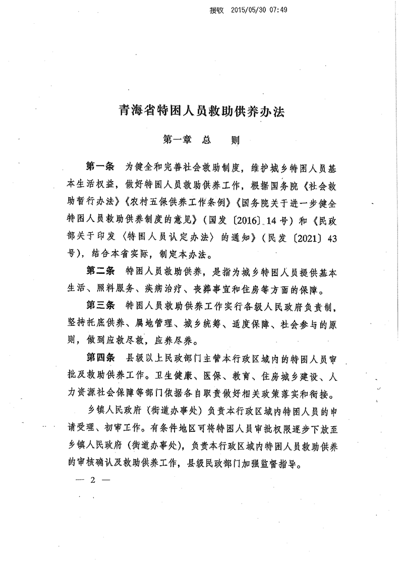青海省人民政府关于印发青海省特困人员救助供养办法的通知