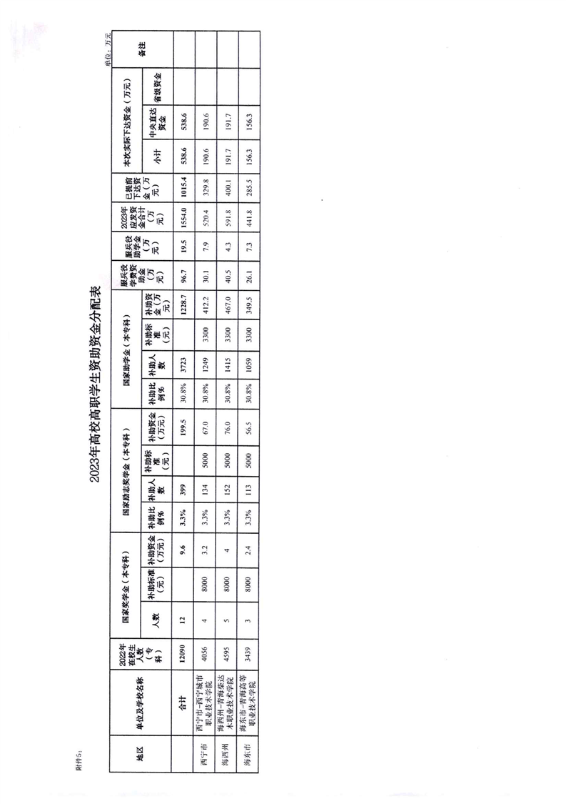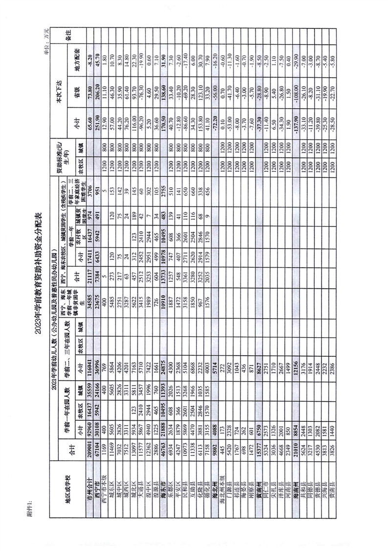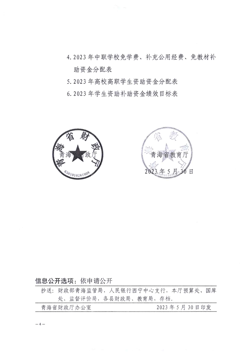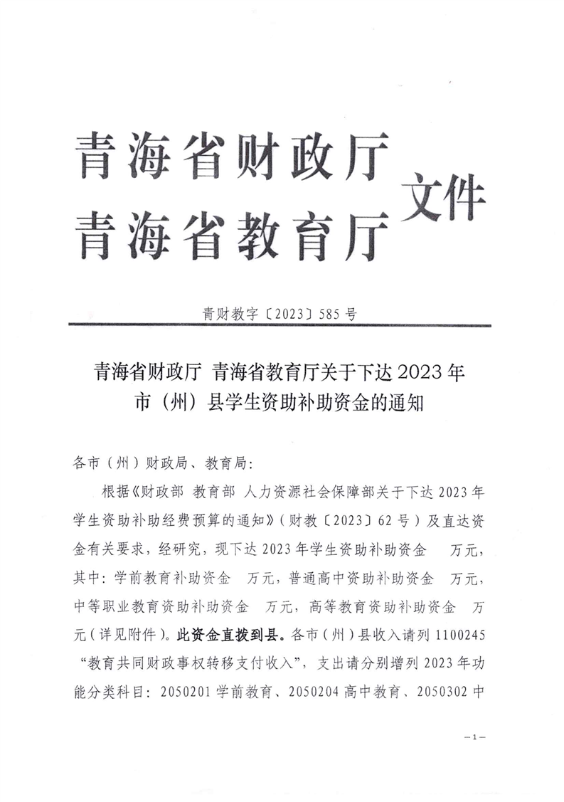 青海省财政厅青海省教育厅关于下达2023年市(州)县学生资助补助资金的通知