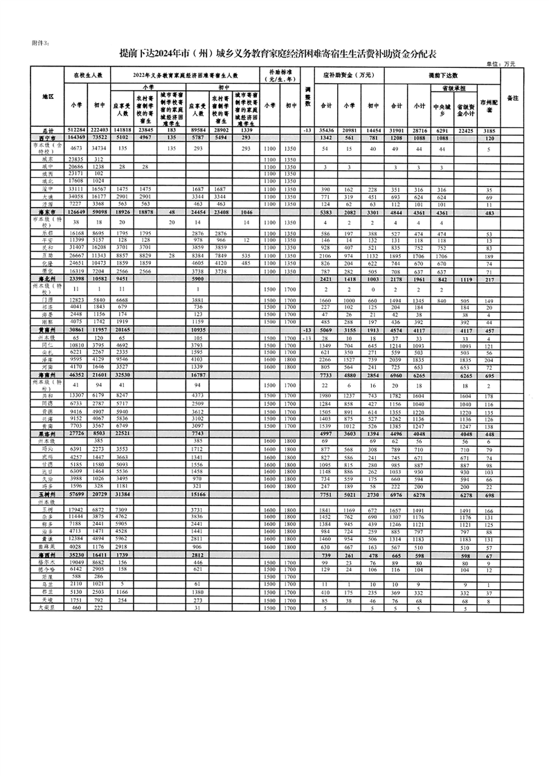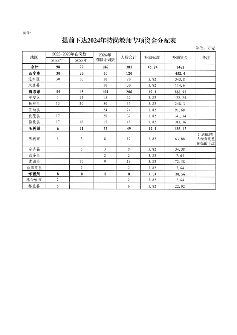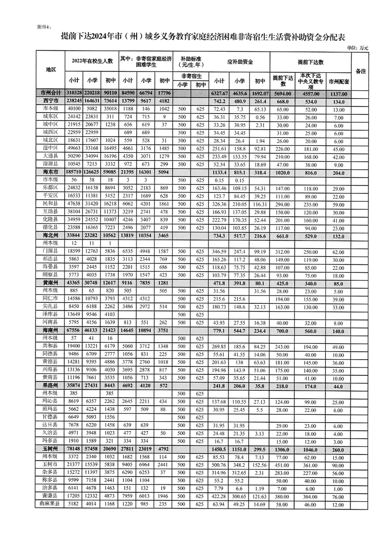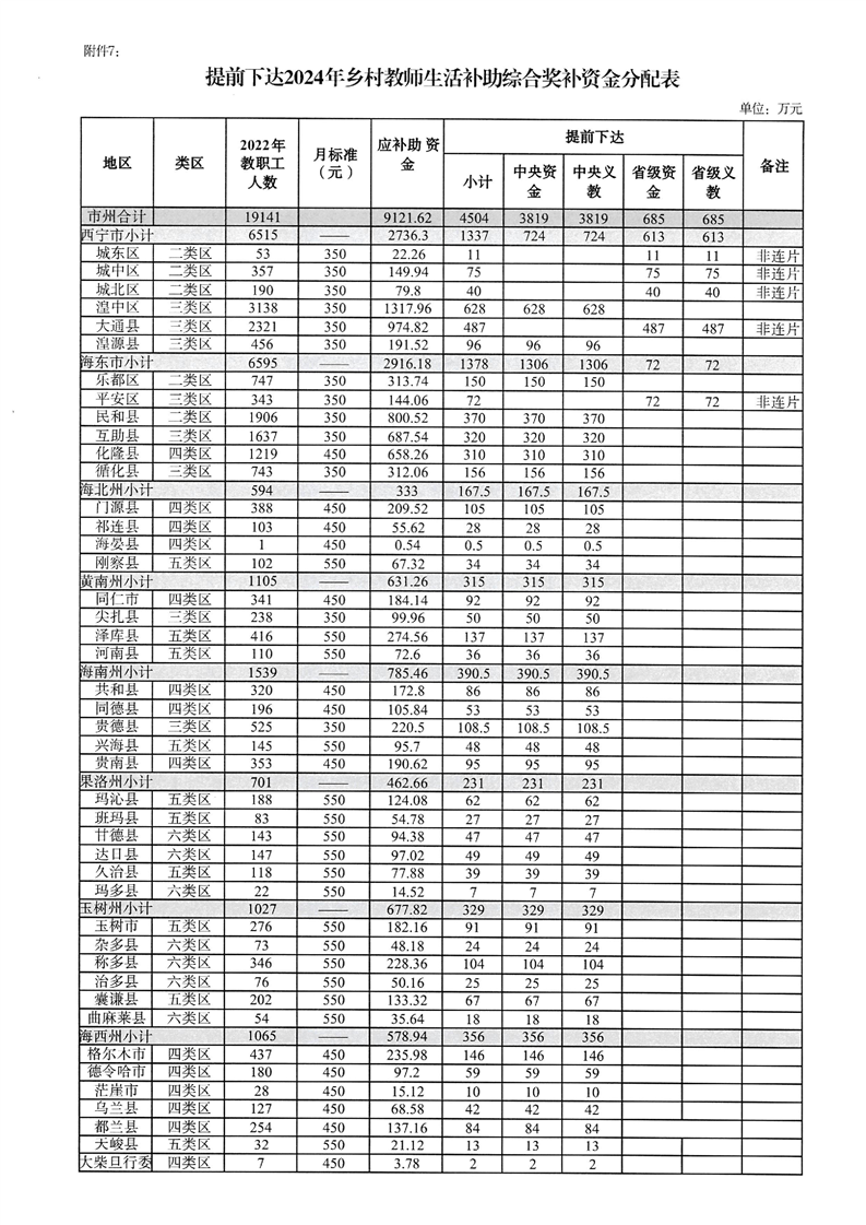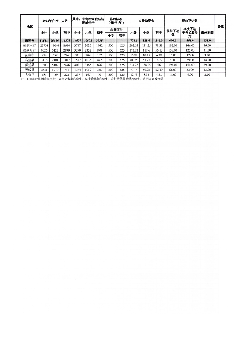 青海省财政厅教育厅关于提前下达2024年市(州)义务教育补助经费的通知