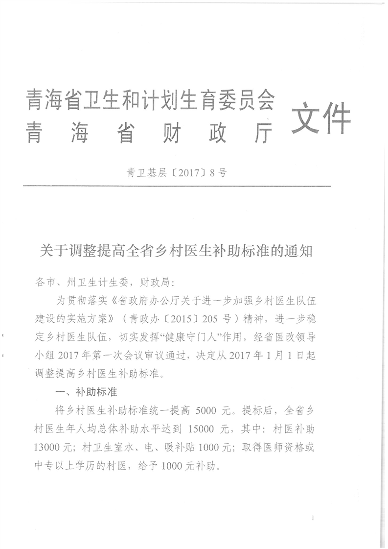 政策文号:青卫基层〔2017〕8号