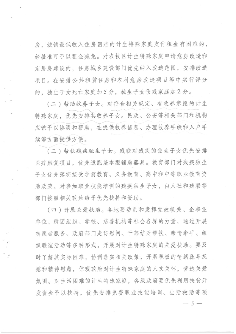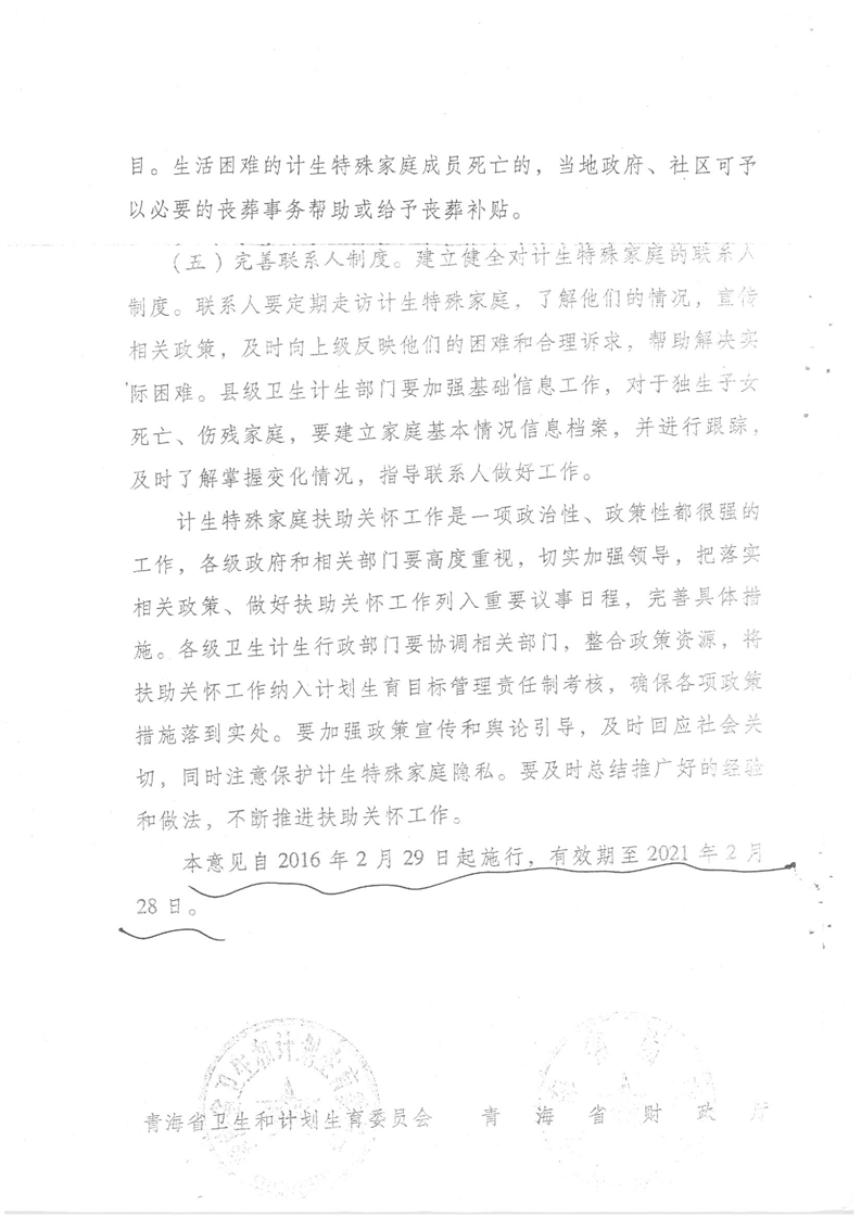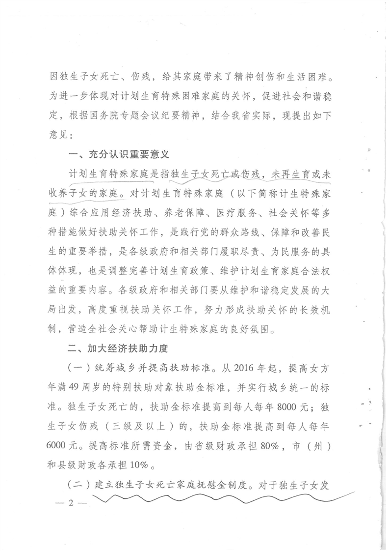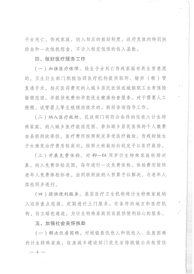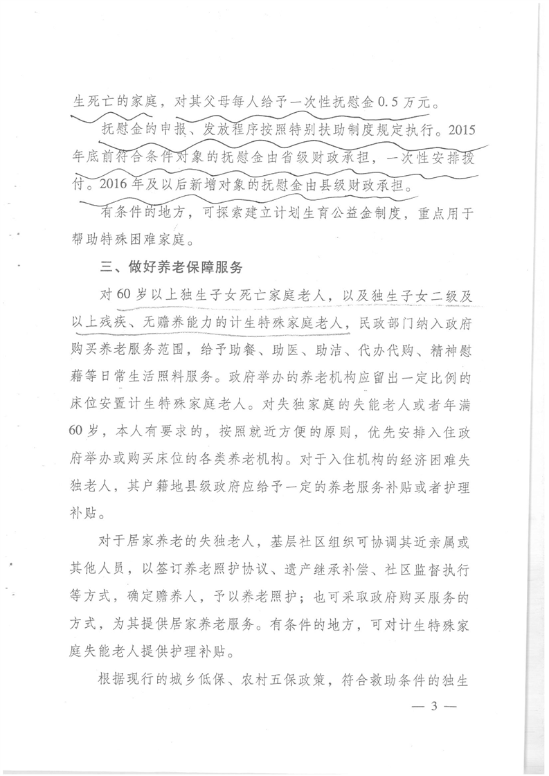 关于进一步加强计划生育特殊家庭扶助关怀工作的意见