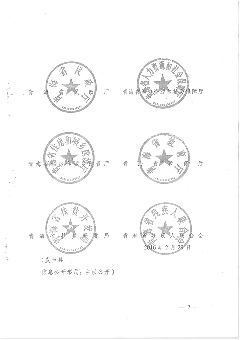 单位:青海省卫生和计划生育委员会、省财政厅、省民政厅、省人力资源和社会保障厅、省住房和城乡建设厅、省教育厅、省扶贫开发局、省残疾人联合会